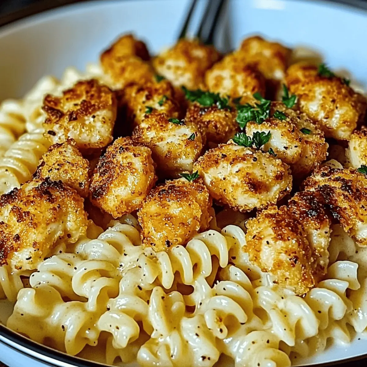 Crispy Goodness: The golden crunch of the chicken bites provides a satisfying contrast to the creamy rotini, turning every bite into a flavor sensation.