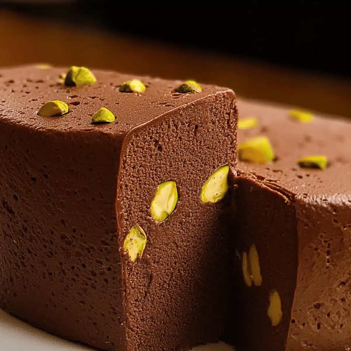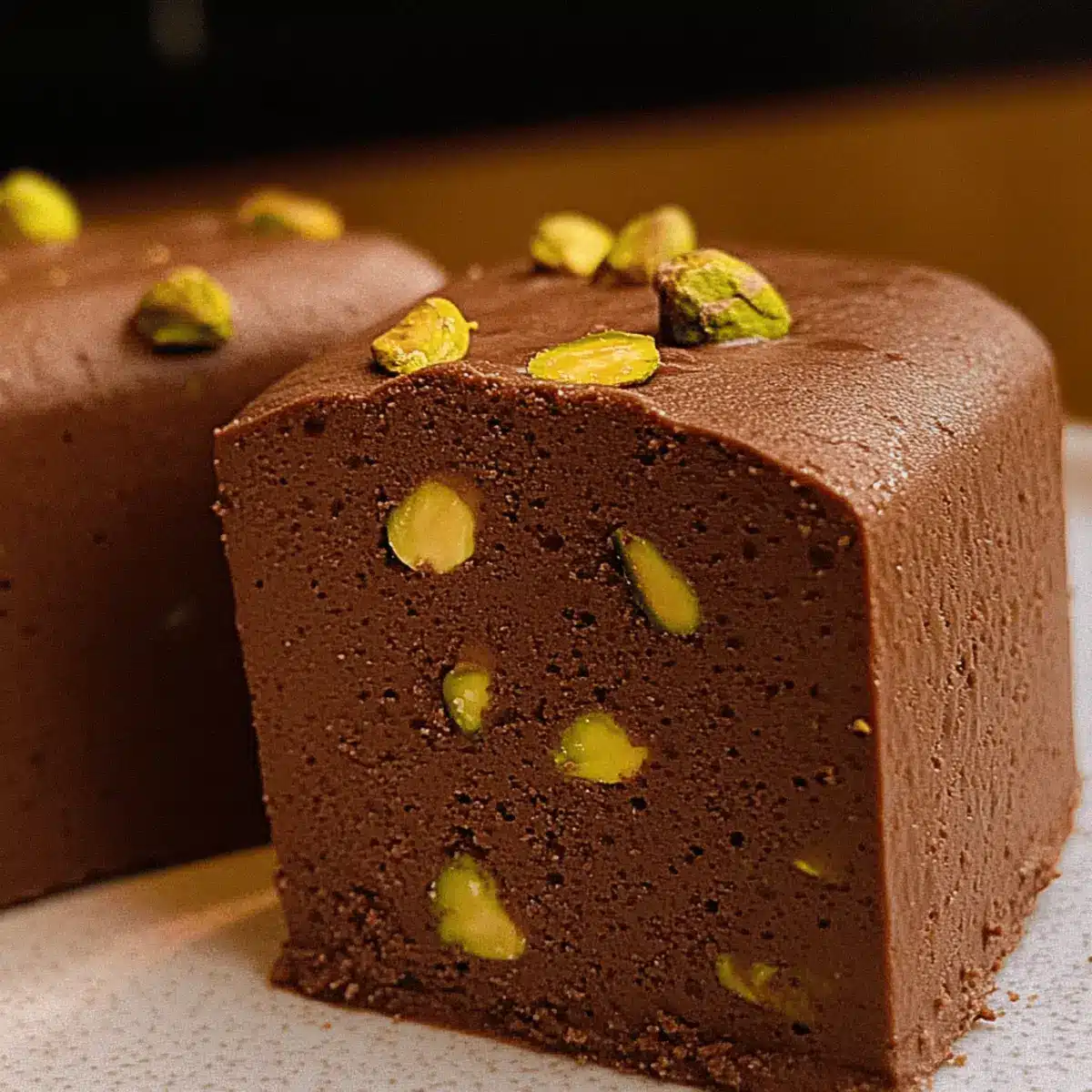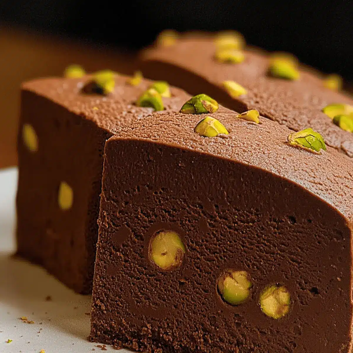 - To serve, remove from the freezer and let it soften slightly at room temperature for about 10-15 minutes. Cut into generous pieces and drizzle with chocolate sauce or sprinkle some extra pistachios on top.