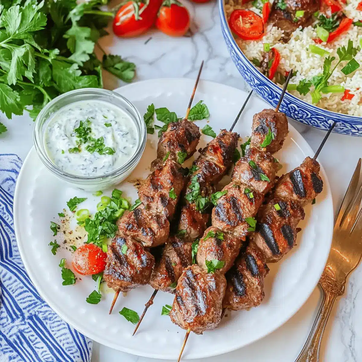 Crowd-Pleaser: Perfect for gatherings, these kebabs paired with a creamy yogurt dipping sauce are sure to impress your guests and keep them coming back for more.
