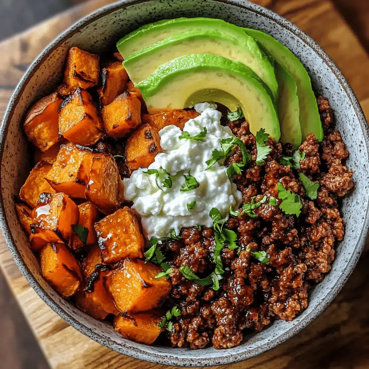 Layering is Key: When assembling your bowl, layer each component thoughtfully. Start with sweet potatoes, then add beef, and finish with toppings to create delightful contrasts in every bite.