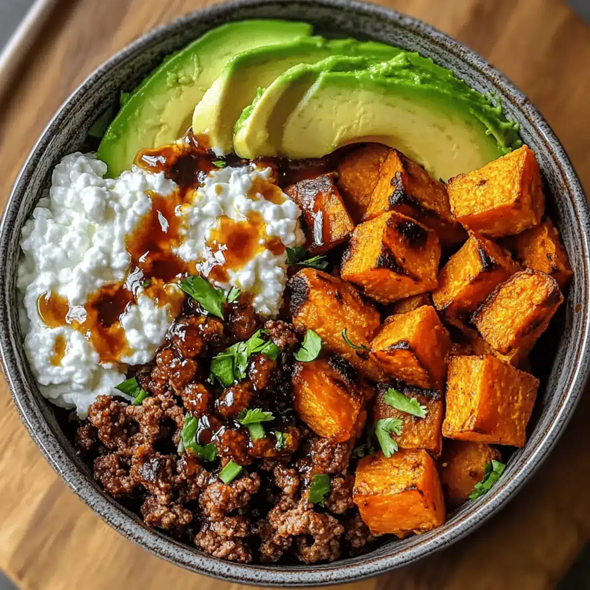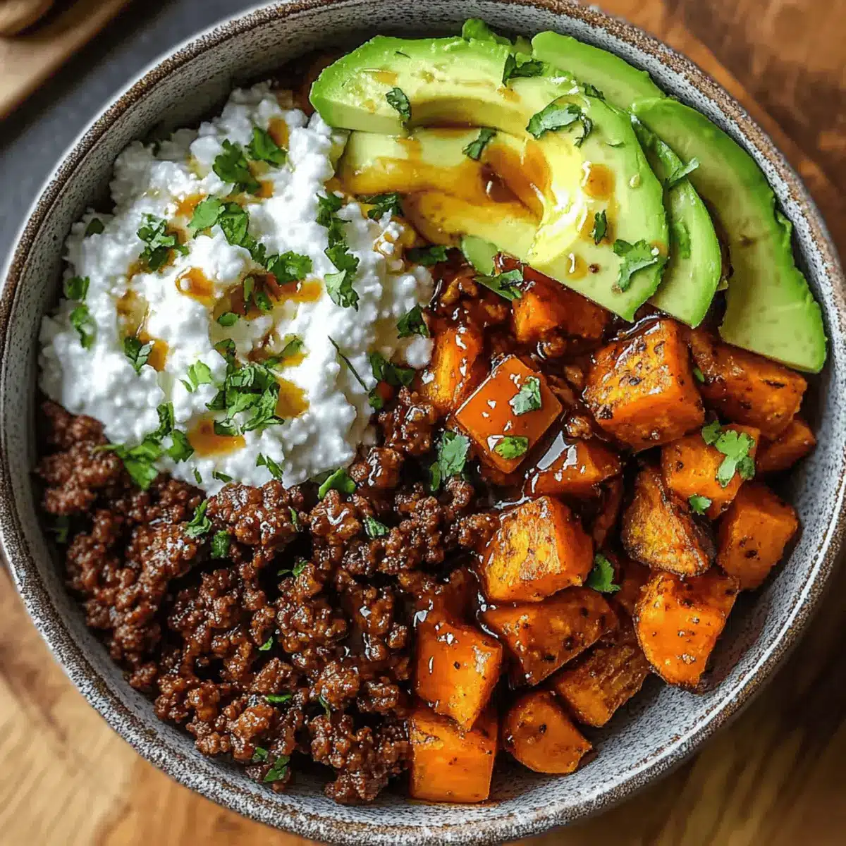 Store & Reheat Wisely: To maintain texture, store ingredients separately in airtight containers. Reheat the beef and sweet potatoes before serving; keep cold toppings like cottage cheese and avocado fresh until the last minute.