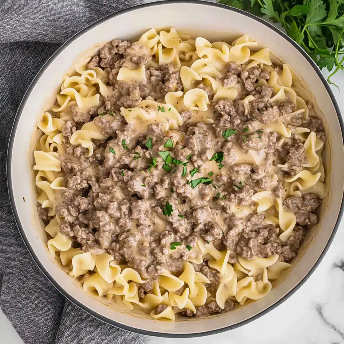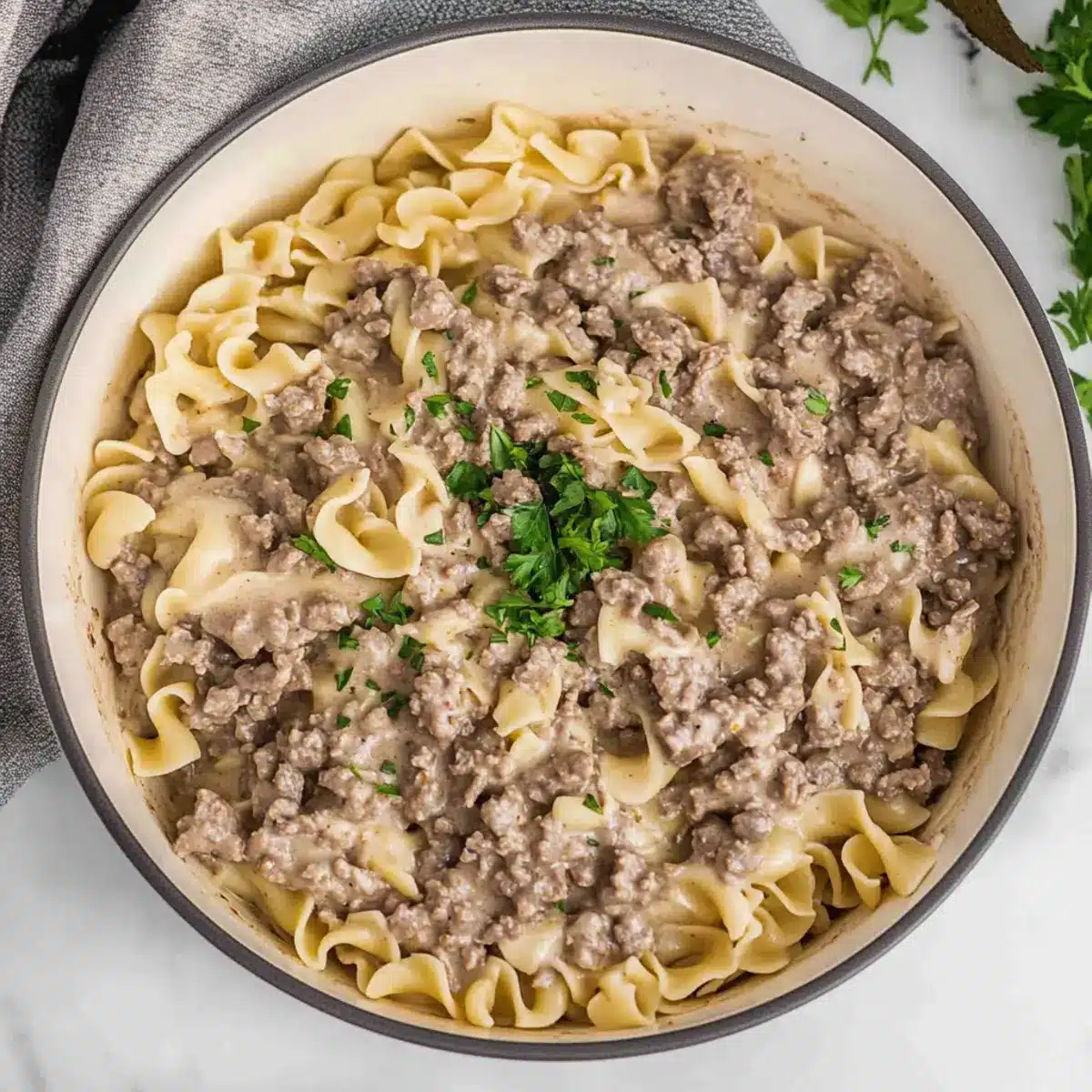 Creamy Comfort: The rich, creamy sauce envelops tender ground beef and egg noodles, delivering a flavor-packed meal that feels indulgent without the fuss.