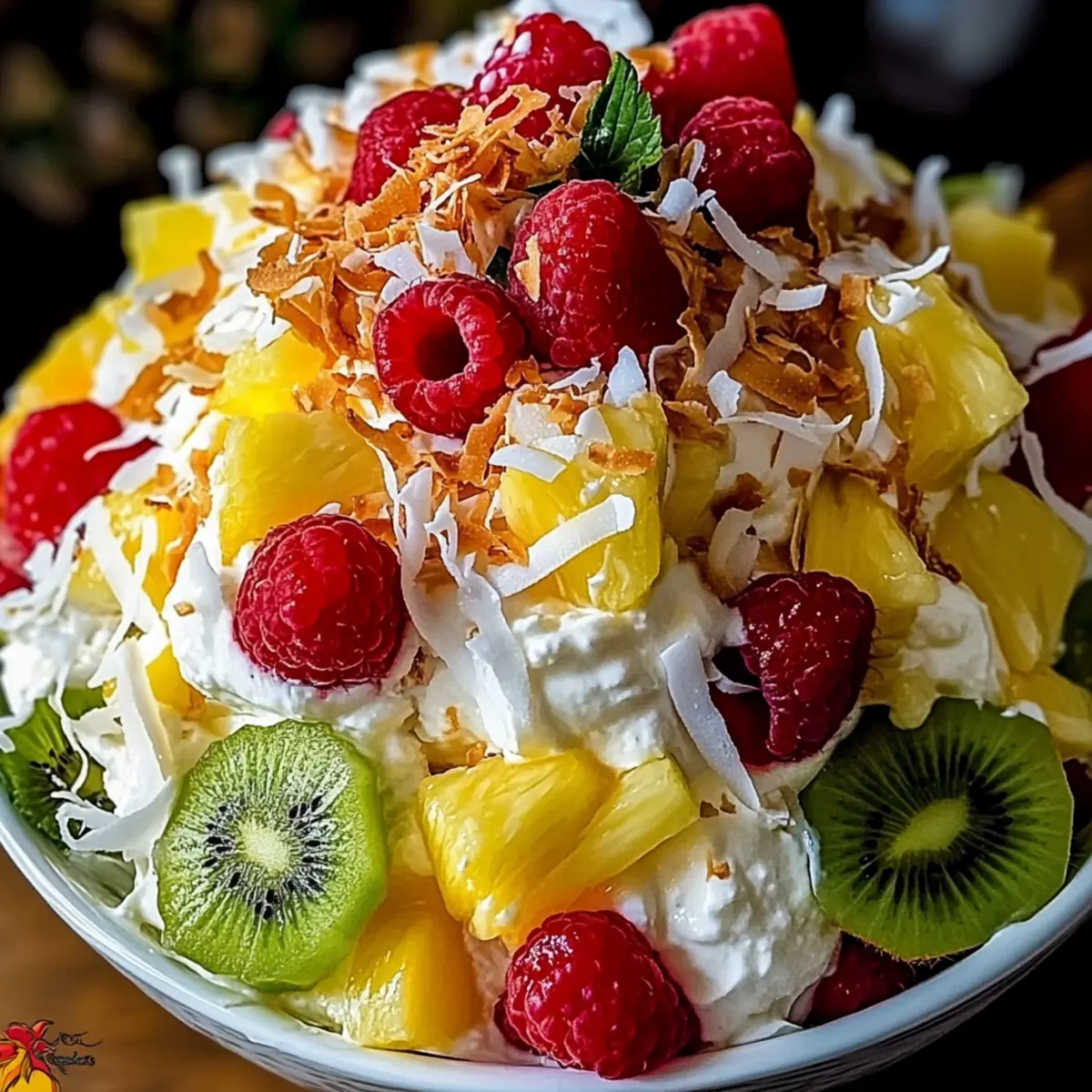 Tropical Fruit Platter: A vibrant mix of additional fruits like mango and papaya can intensify the refreshing qualities of the Hawaiian Cheesecake Salad.