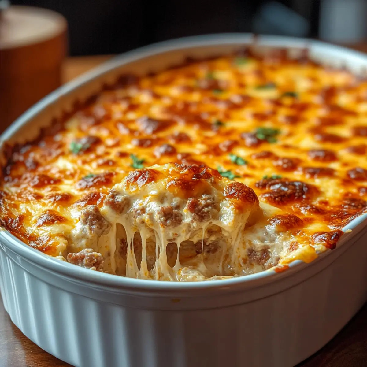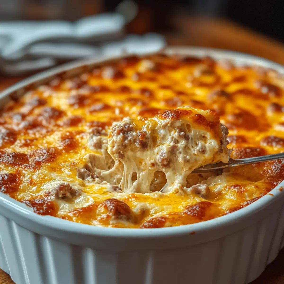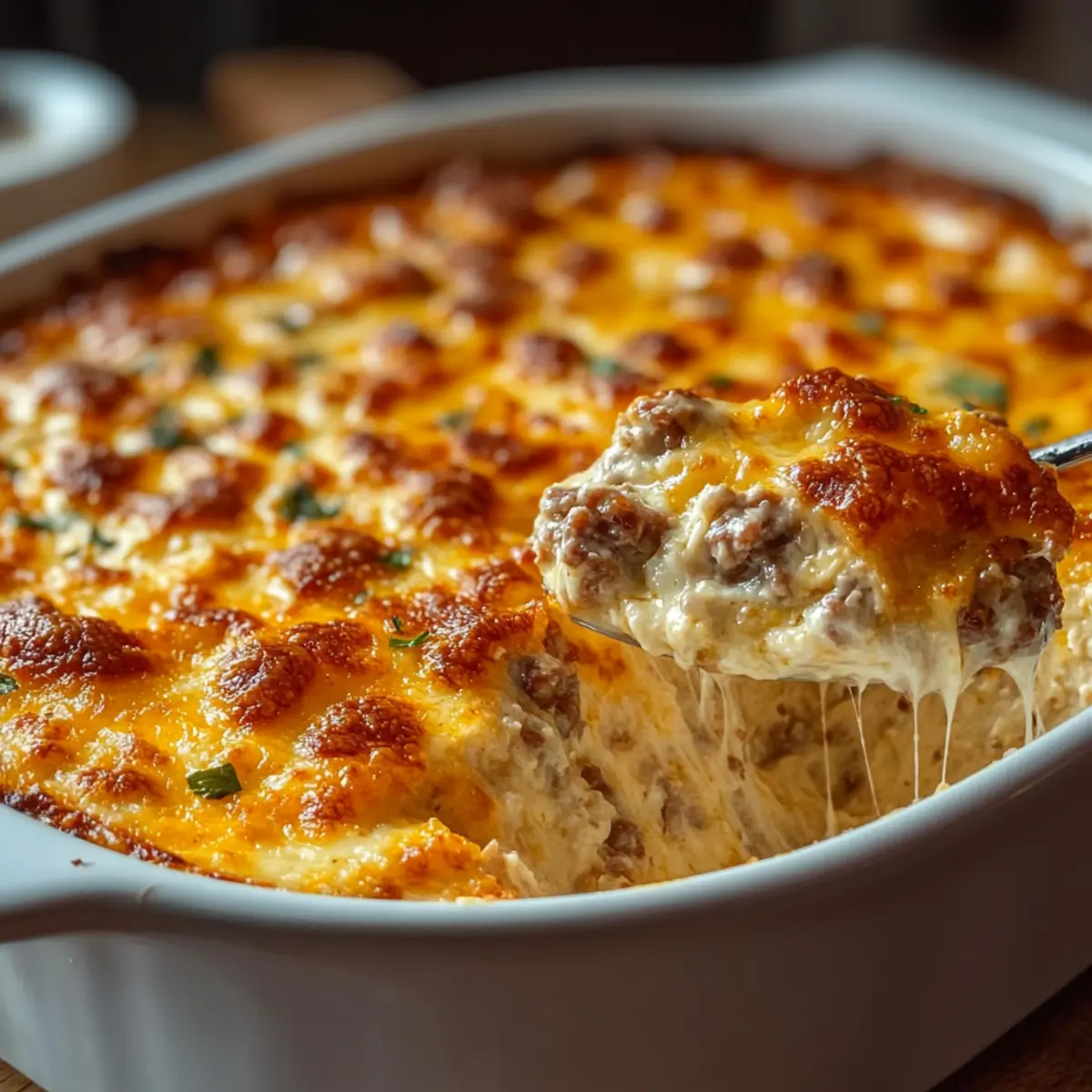 Healthier Version: Replace sausage with turkey sausage, opt for Greek yogurt instead of sour cream, and choose reduced-fat cheeses for a lighter dip without sacrificing taste.
