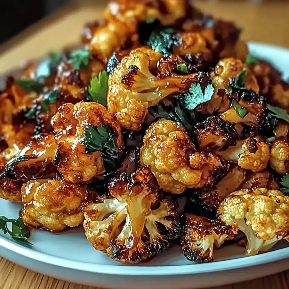 Once roasted, carefully remove the cauliflower from the oven and let it cool for a few minutes. To finish, sprinkle the roasted florets generously with fresh chopped cilantro for a pop of color and freshness. Now your Honey Curry Roasted Cauliflower is ready to serve, perfect for enhancing any meal or as a delightful standalone dish!