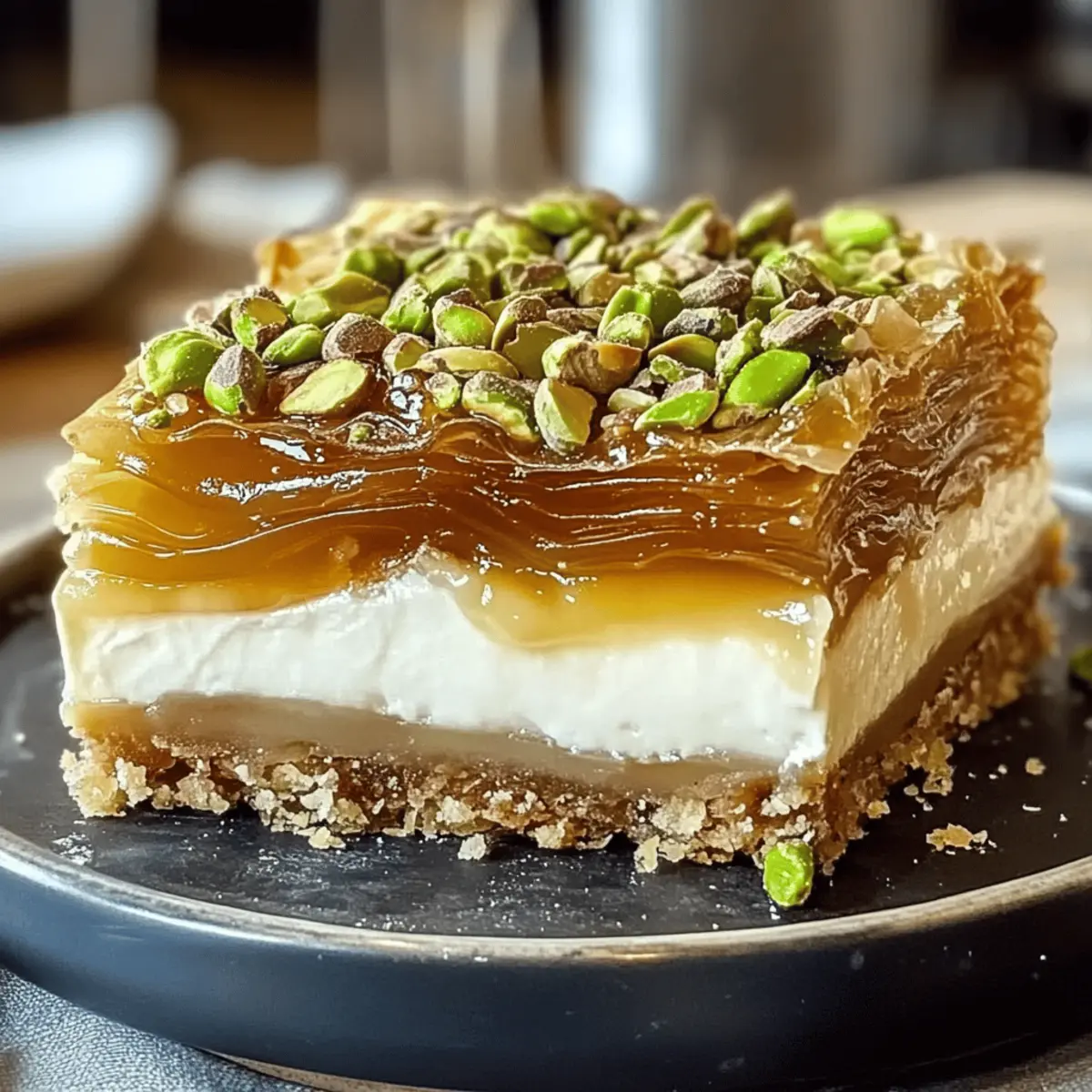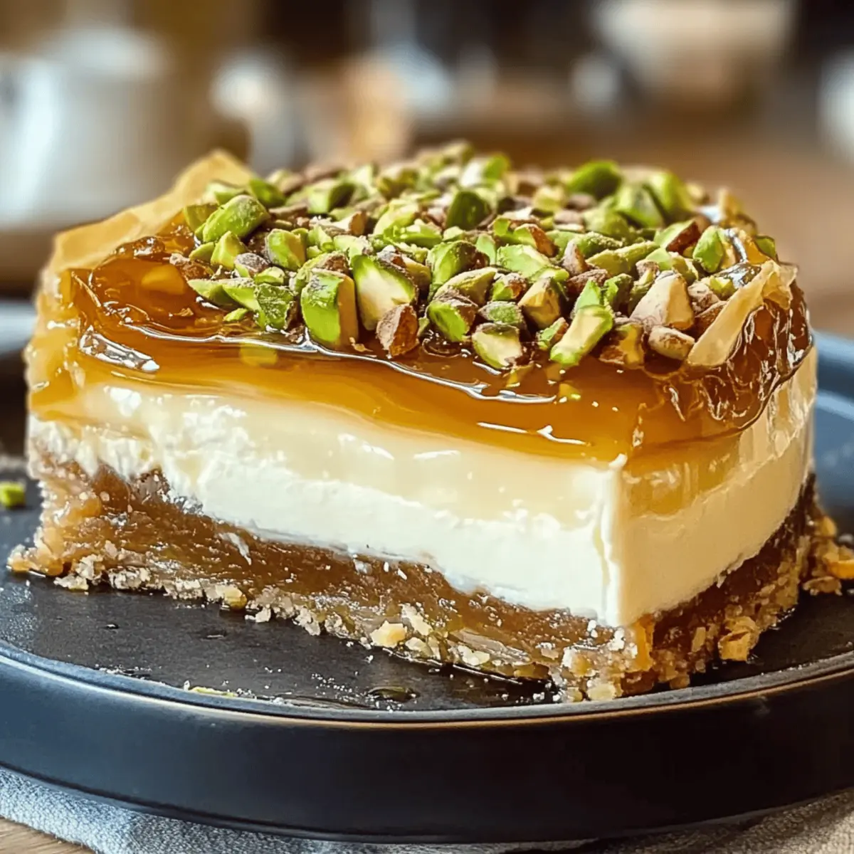 Luxurious Fusion: The Honey Pistachio Baklava Cheesecake blends Eastern and Western flavors beautifully, combining creamy cheesecake with the crispy delight of baklava.