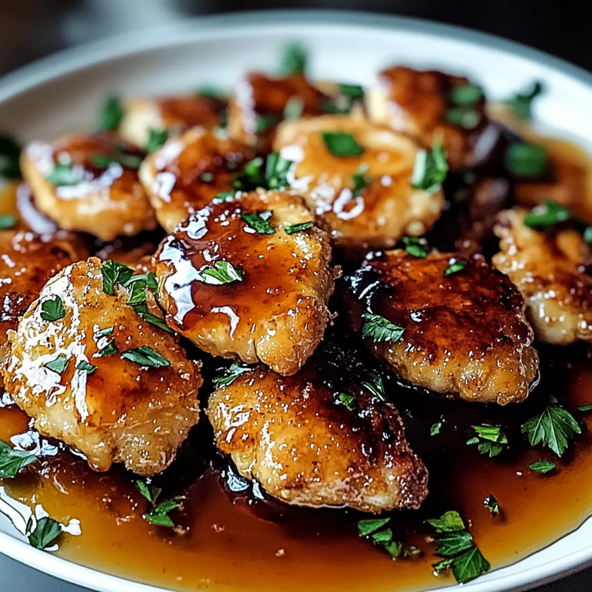 - Serve the chicken cutlets drizzled with the hot honey sauce and garnish with fresh parsley.