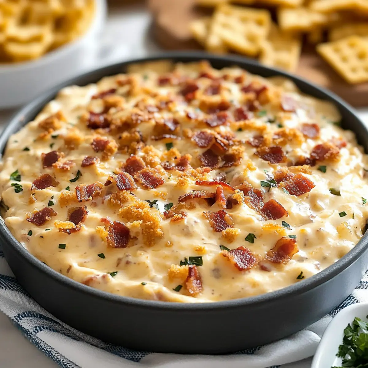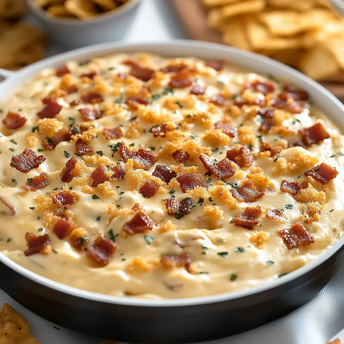 Savory Crunch: Crispy bacon adds a delightful crunch and savory goodness, balancing out the creamy dip perfectly.