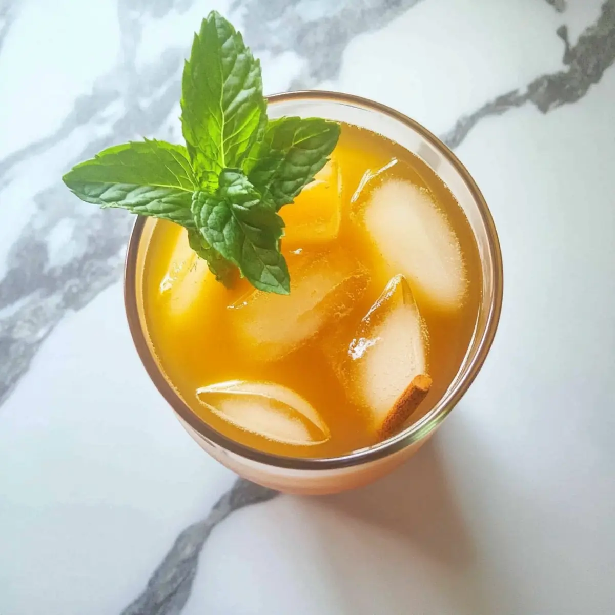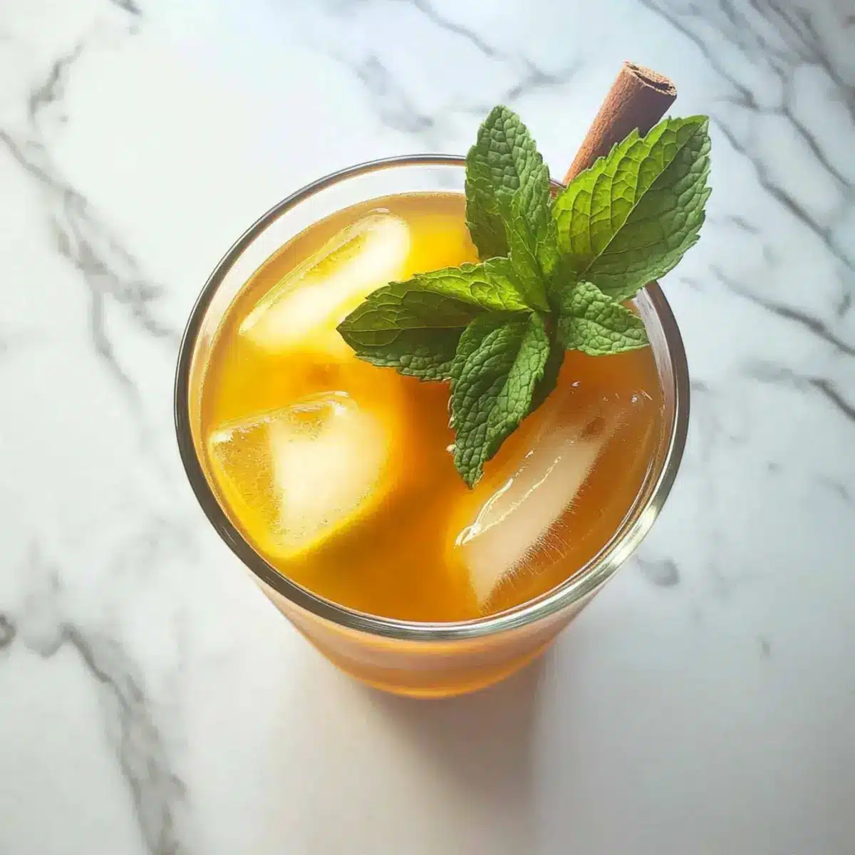 To finish, garnish your refreshing drink with fresh mint leaves for a pop of color and added freshness. Take a moment to admire the vibrant presentation before sipping, letting the combination of flavors cool and energize your summer days with this delicious Iced Turmeric Green Tea.