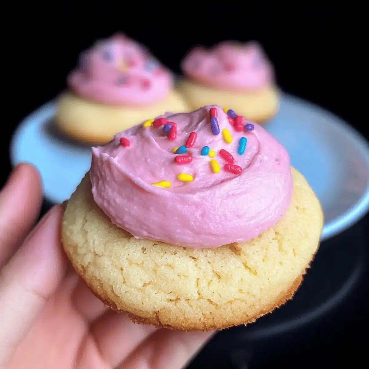 Frosted cookies can be refrigerated in an airtight container for up to a week. Make sure to allow them to sit at room temperature for about 10 minutes before serving to ensure optimal texture. If you’ve made a large batch, consider freezing unfrosted cookies instead to maintain freshness!