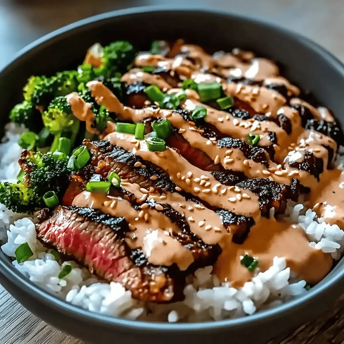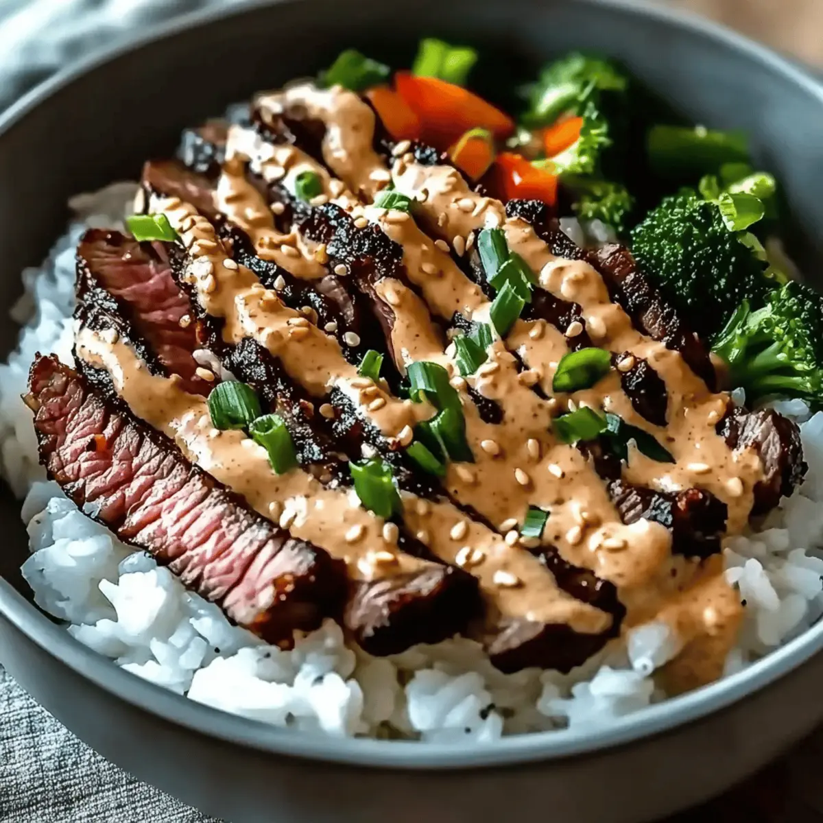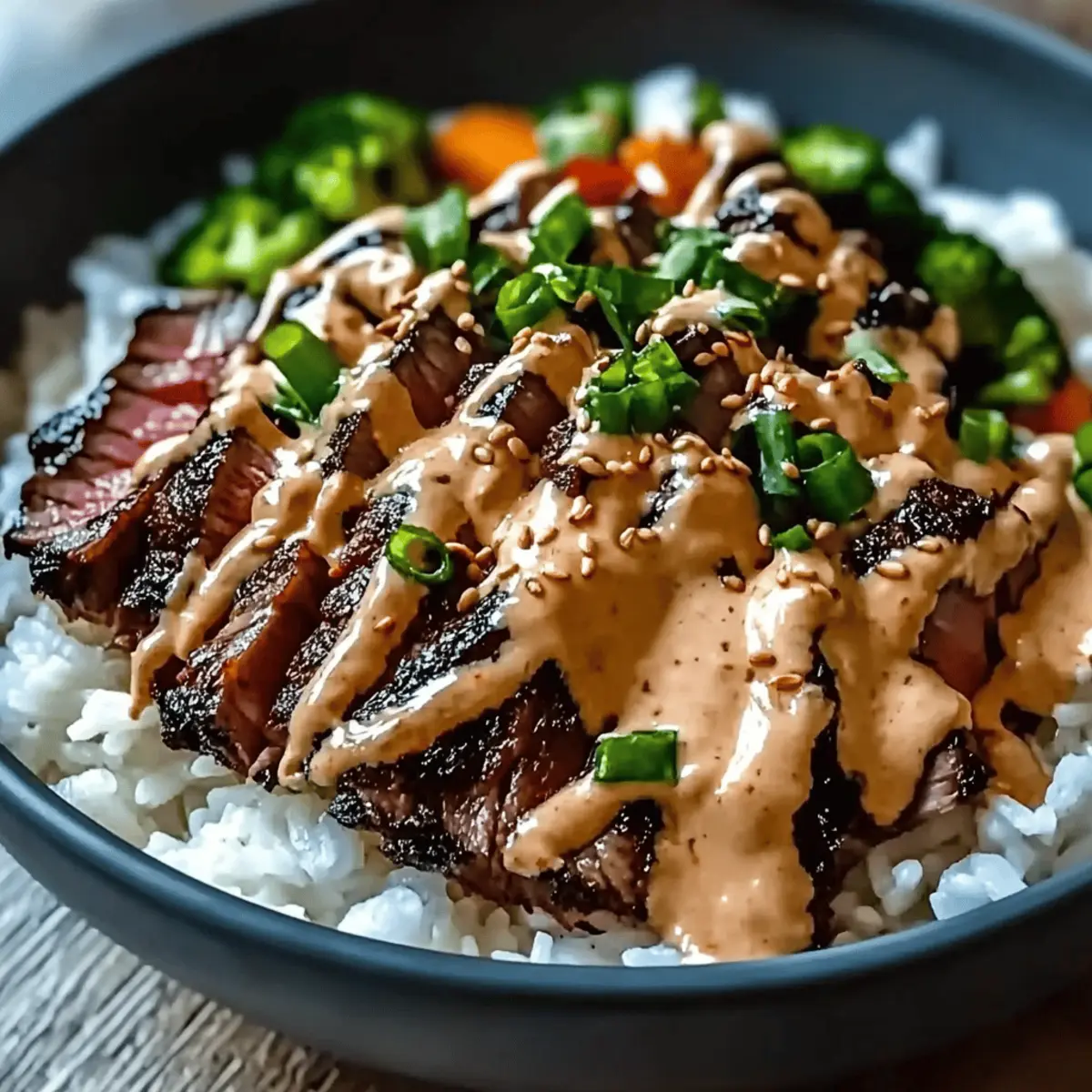 Korean BBQ Steak Rice Bowls with Spicy Cream Sauce Bliss