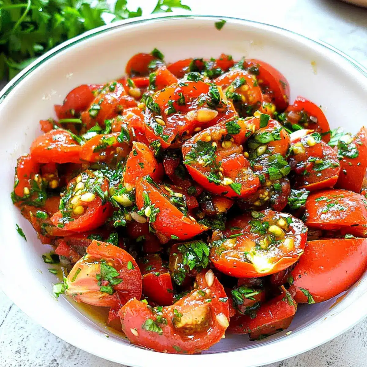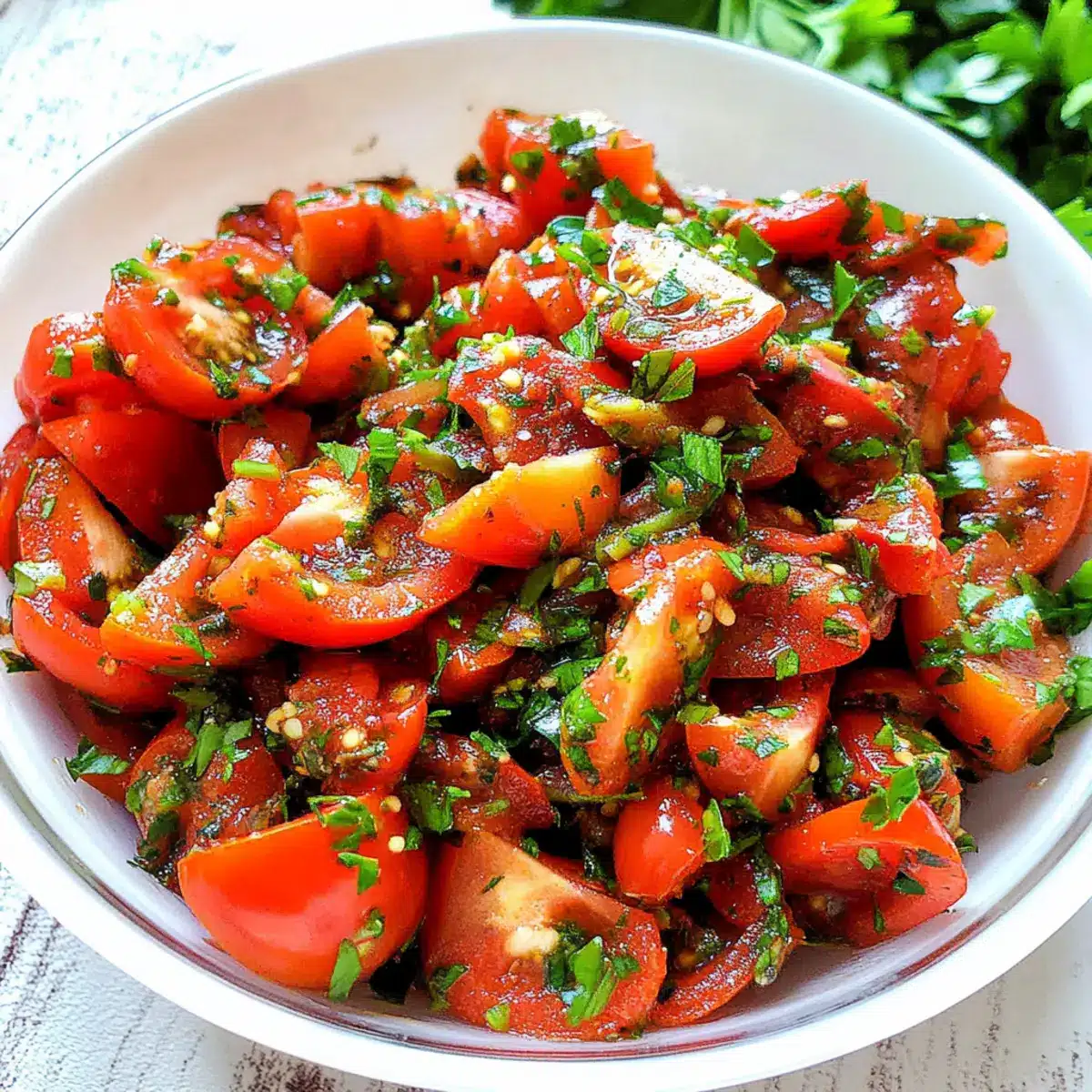 Vibrant Flavors: This salad is a dazzling blend of juicy tomatoes, garlic, and tangy sumac that truly brings the Mediterranean essence to your table.