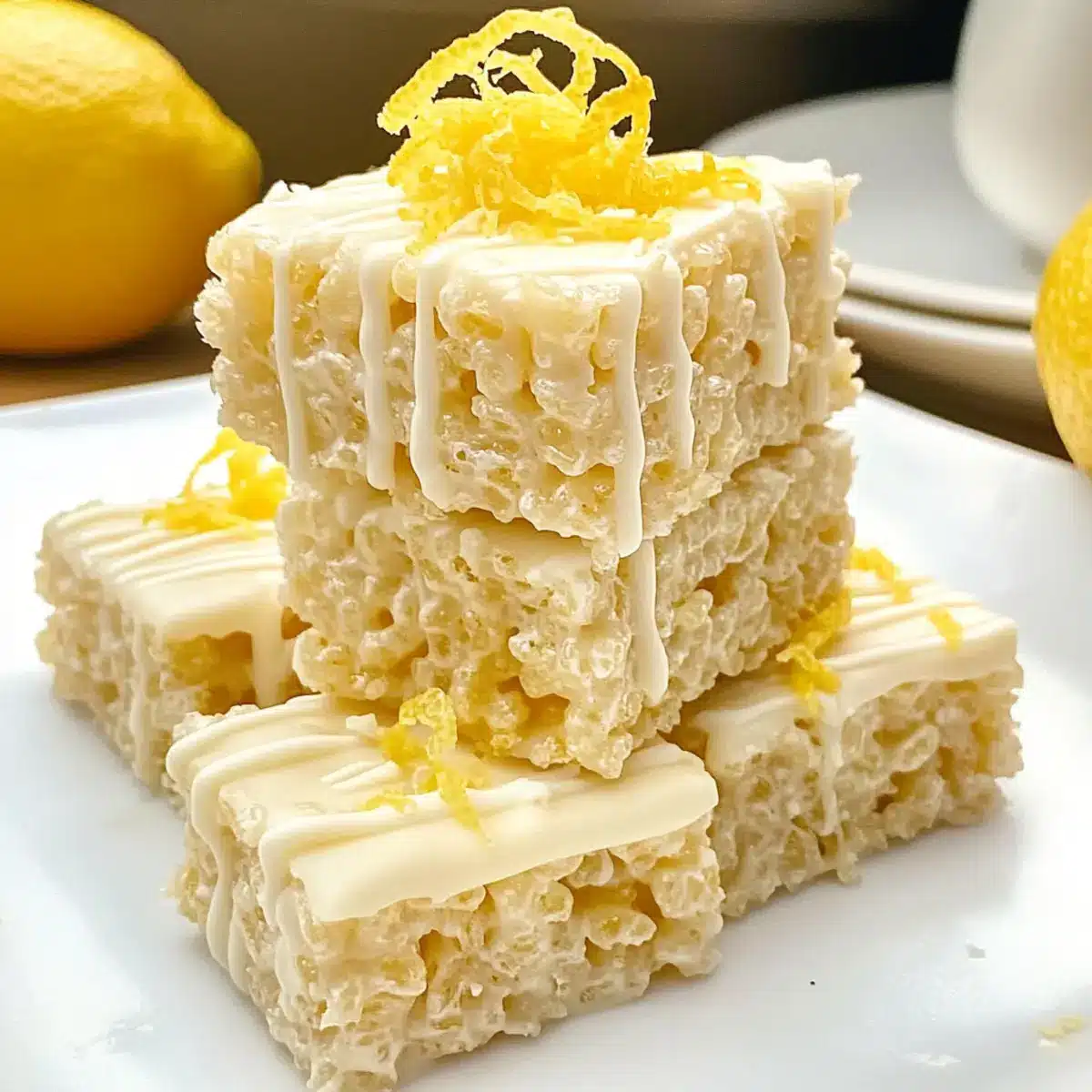As the sunshine streams through my kitchen window, I can’t help but smile at the thought of these Lemon Rice Krispy Treats with White Chocolate Drizzle. This delightful twist on the classic dessert offers a refreshing brightness that transforms ordinary moments into something special. Perfectly no-bake, they come together in a snap, making them an ideal treat for busy families or casual gatherings with friends. With a soft, gooey texture coupled with a hint of zesty lemon flavor, these treats are sure to be a hit at your next get-together. Plus, the rich white chocolate drizzle adds an extra layer of indulgence that you simply can’t resist. Are you ready to whip up this easy, family-friendly treat that will have everyone craving more?