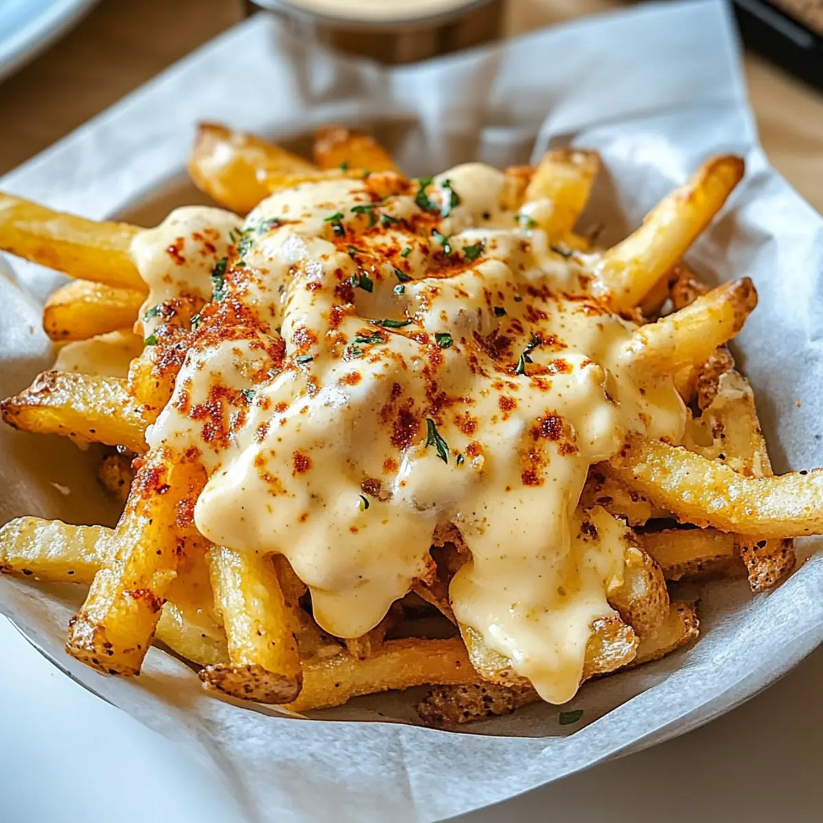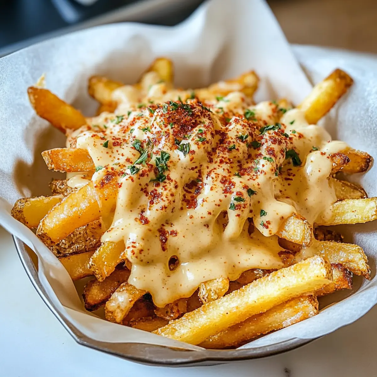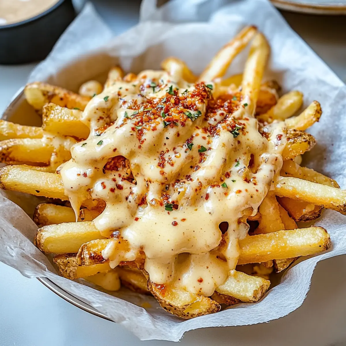 Crispy Toppings: Sprinkle crispy bacon bits or crispy onions on top for a satisfying crunch that complements the creaminess of the fries.