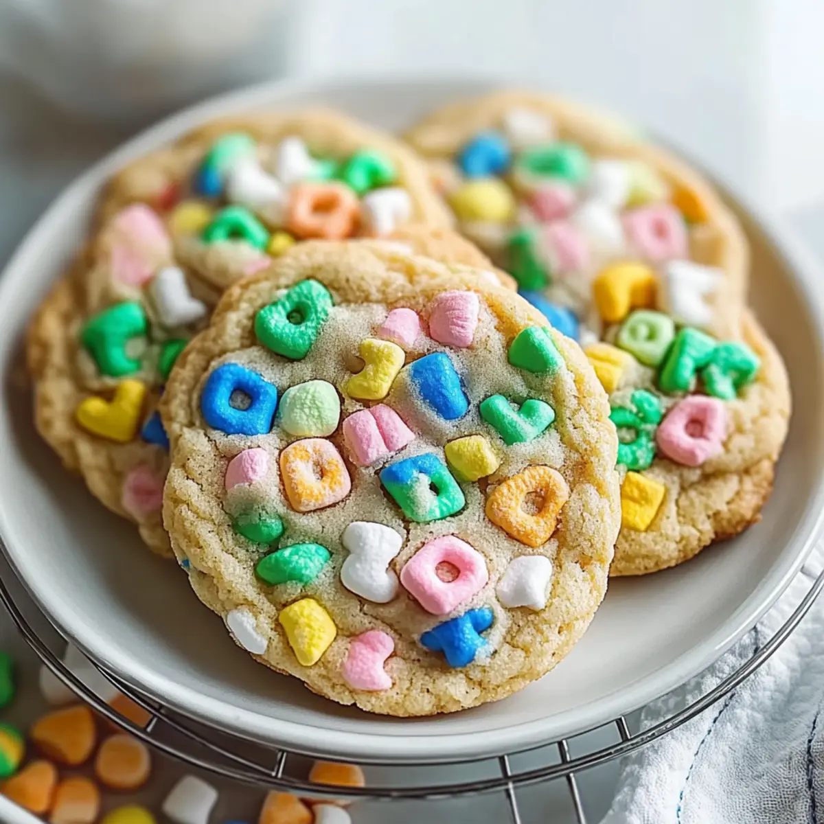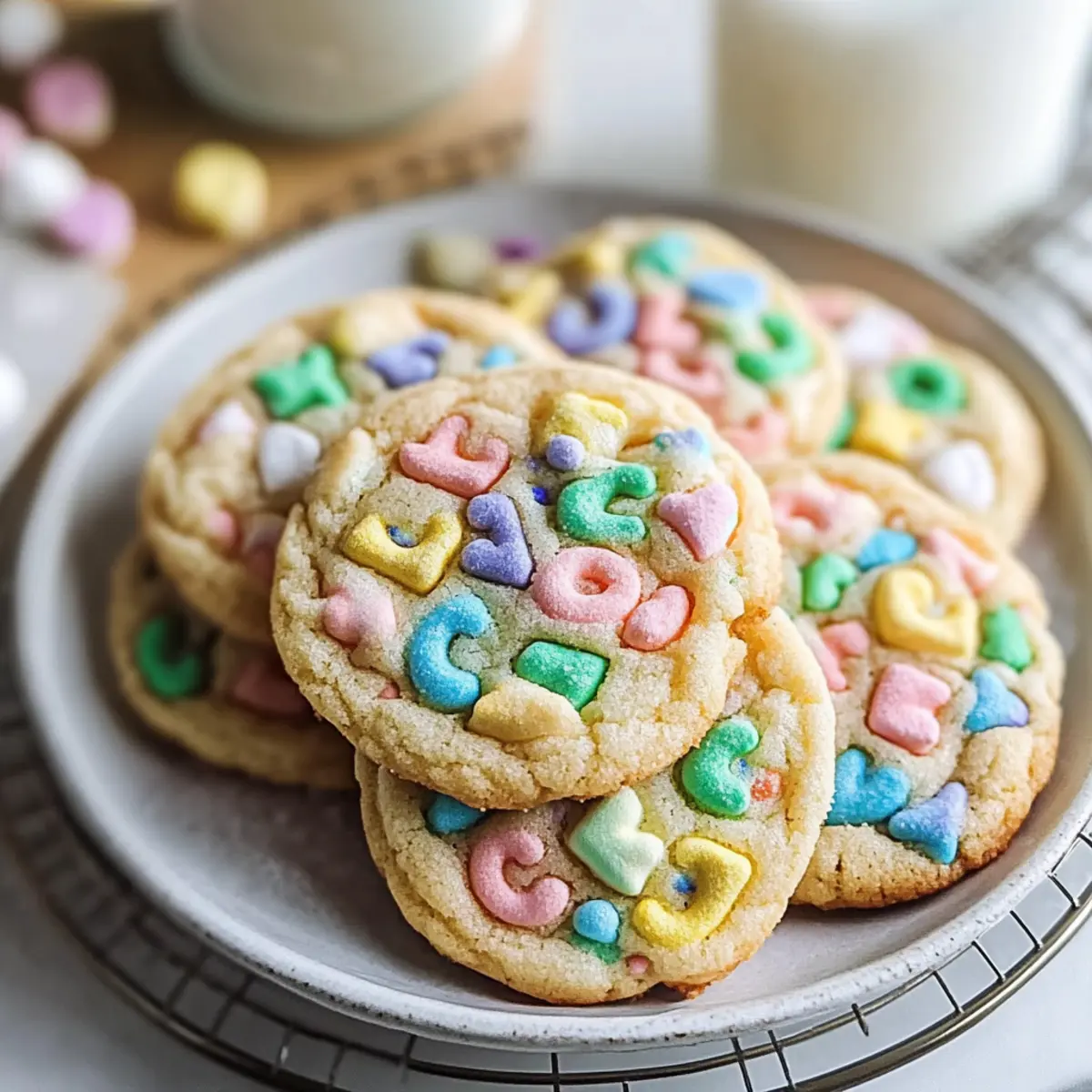 Let the cookies cool on the baking sheet for about 5 minutes. This allows them to set up properly without becoming too fragile. After that, transfer the cookies to wire racks to cool completely. This process helps them maintain their lovely texture while you eagerly anticipate the first bite of your Lucky Charms Cookies.