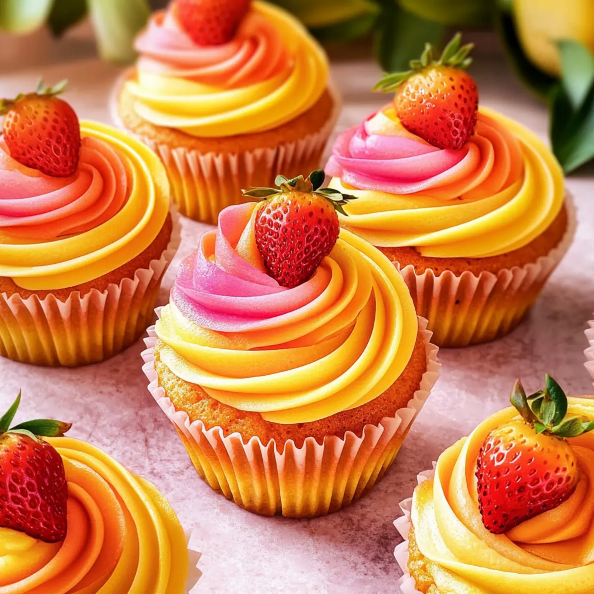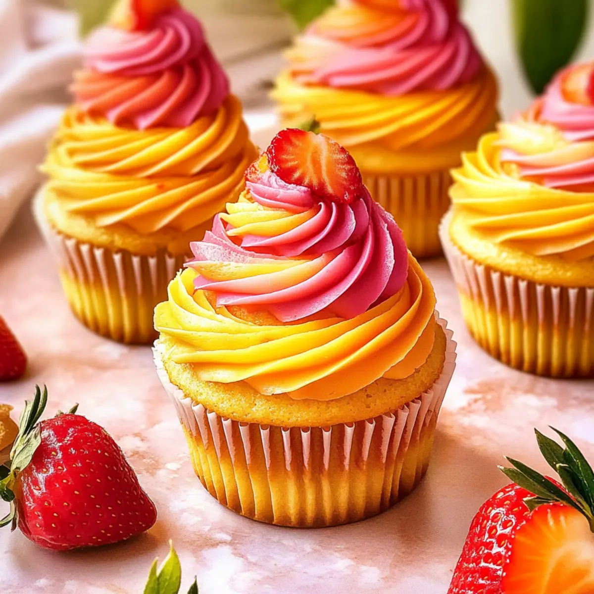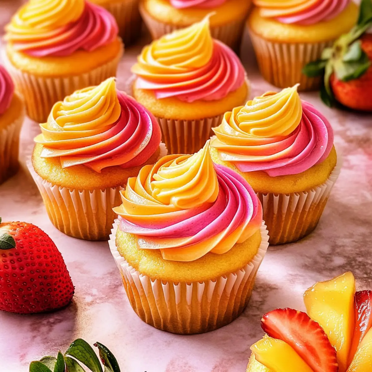 Mango Strawberry Sunset Cupcakes for a Tropical Treat Delight
