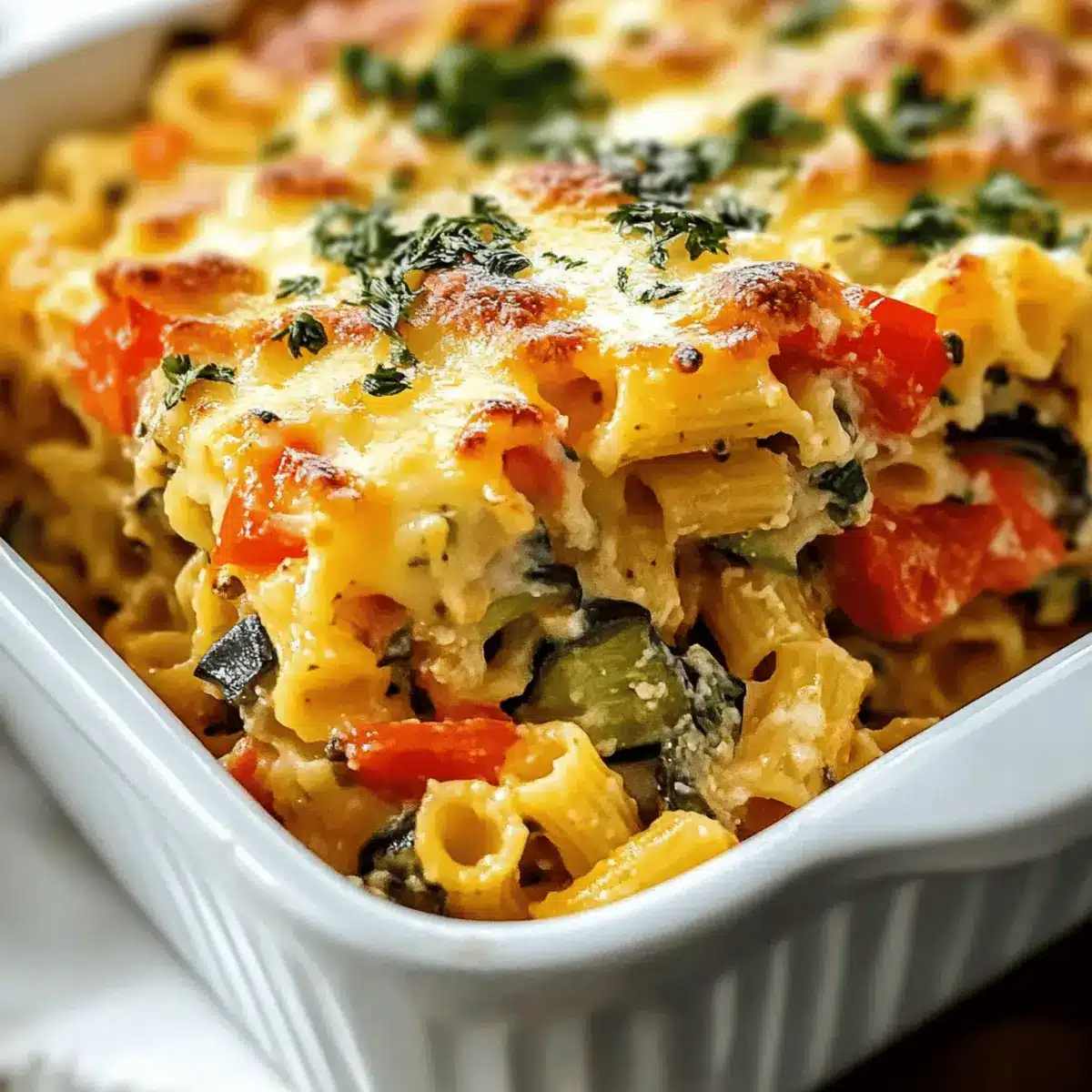 This Creamy Mediterranean Vegetable Pasta Bake is perfect for busy home cooks! You can assemble the entire dish up to 24 hours in advance, storing it in the refrigerator before baking. Simply prepare the roasted vegetables and pasta as instructed, mix everything with the cheese and pesto, then transfer it to your baking dish. To keep the flavors fresh, cover the dish tightly with plastic wrap or aluminum foil. When ready to enjoy, remove the cover and bake the dish at 190°C (375°F) for about 10-15 minutes longer, until heated through and bubbly. This way, you’ll savor a delicious homemade meal with minimal effort on those hectic weeknights!