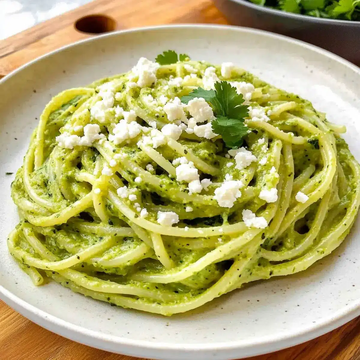 Once everything is well combined and heated through, plate your creamy Mexican green spaghetti immediately. Garnish each serving with chopped cilantro, crumbled cheese, and pepitas if desired. This vibrant dish is sure to be a hit, bringing exciting flavors to your dinner table!