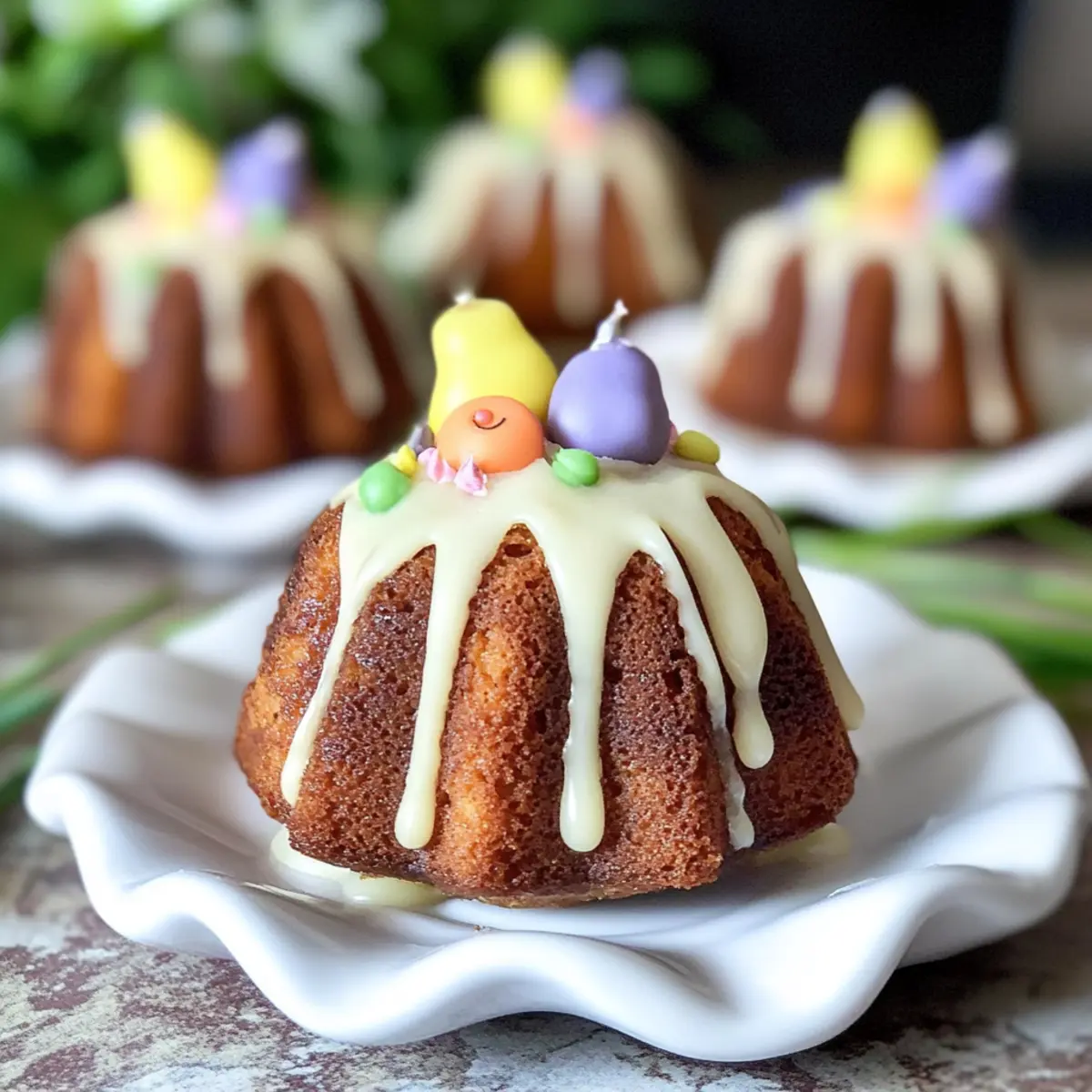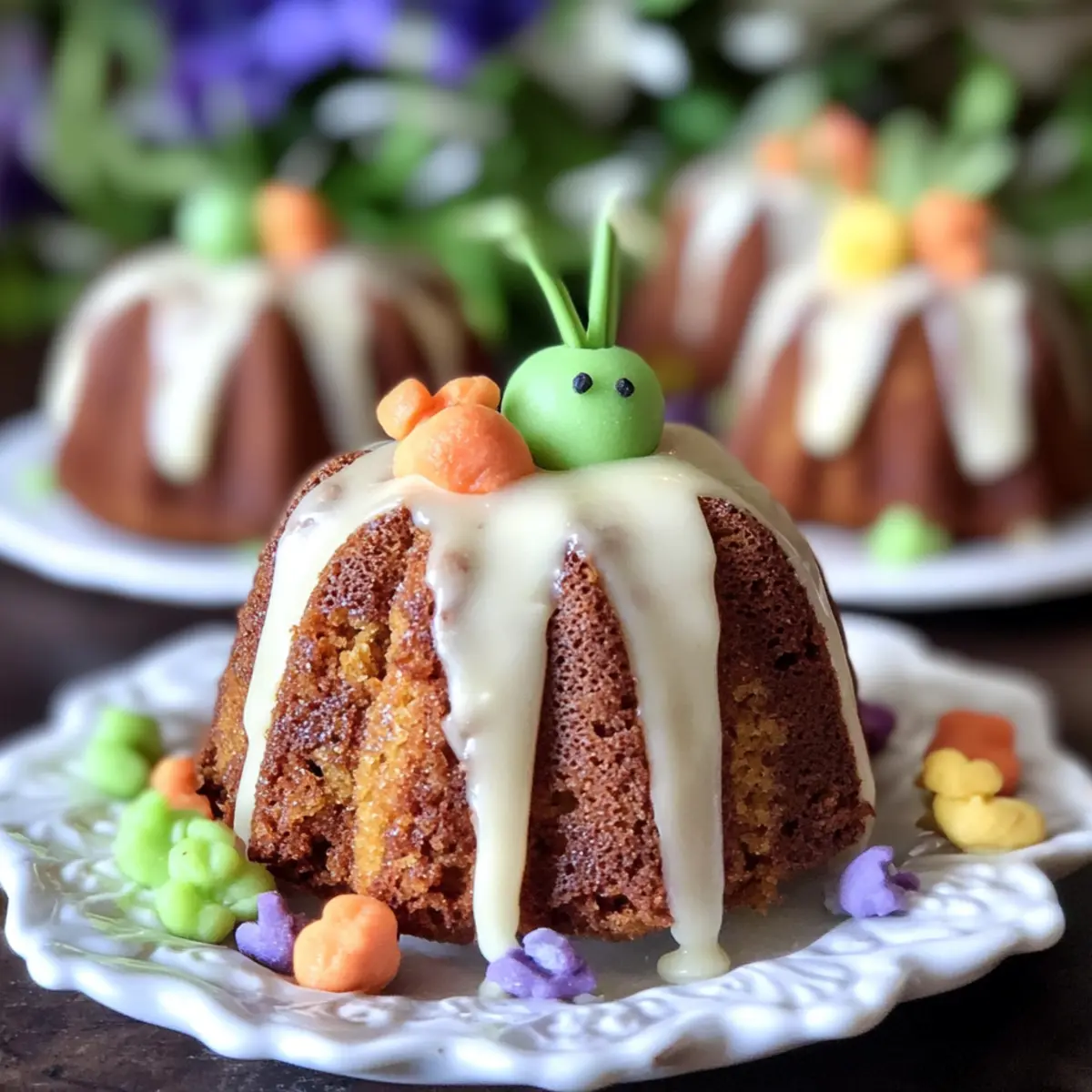 Fun Decorations: Get creative with your decorations! Use seasonal candies like chocolate eggs or edible grass to elevate your mini bundt carrot cakes and make them truly special for your Easter gathering.