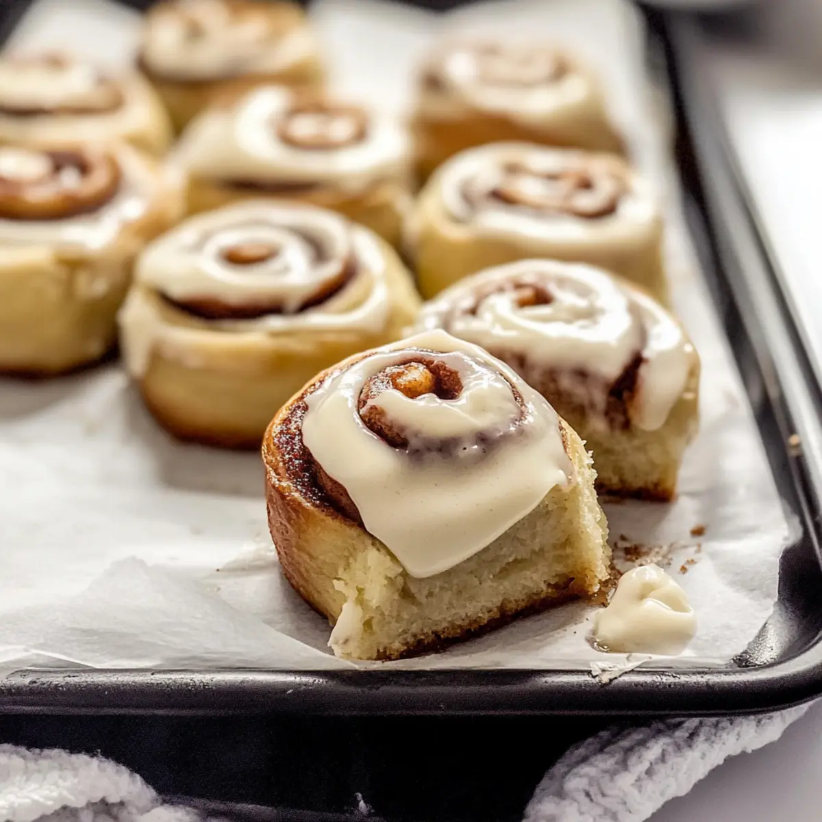 Cover the baking pan with a clean towel and let the mini cinnamon rolls rise for about 30 minutes in a warm, draft-free location. You should see the rolls puff up significantly, indicating they’re ready for the oven!