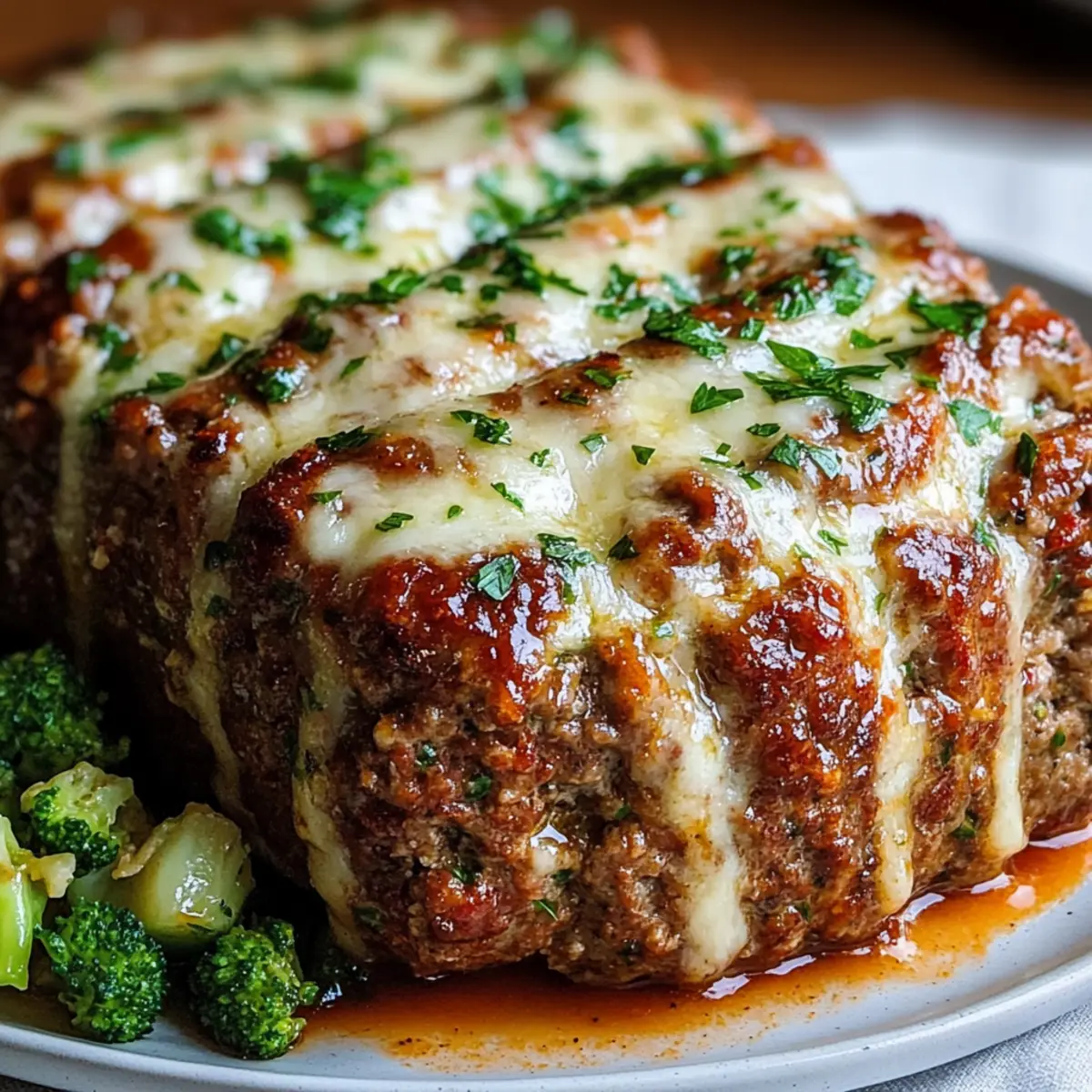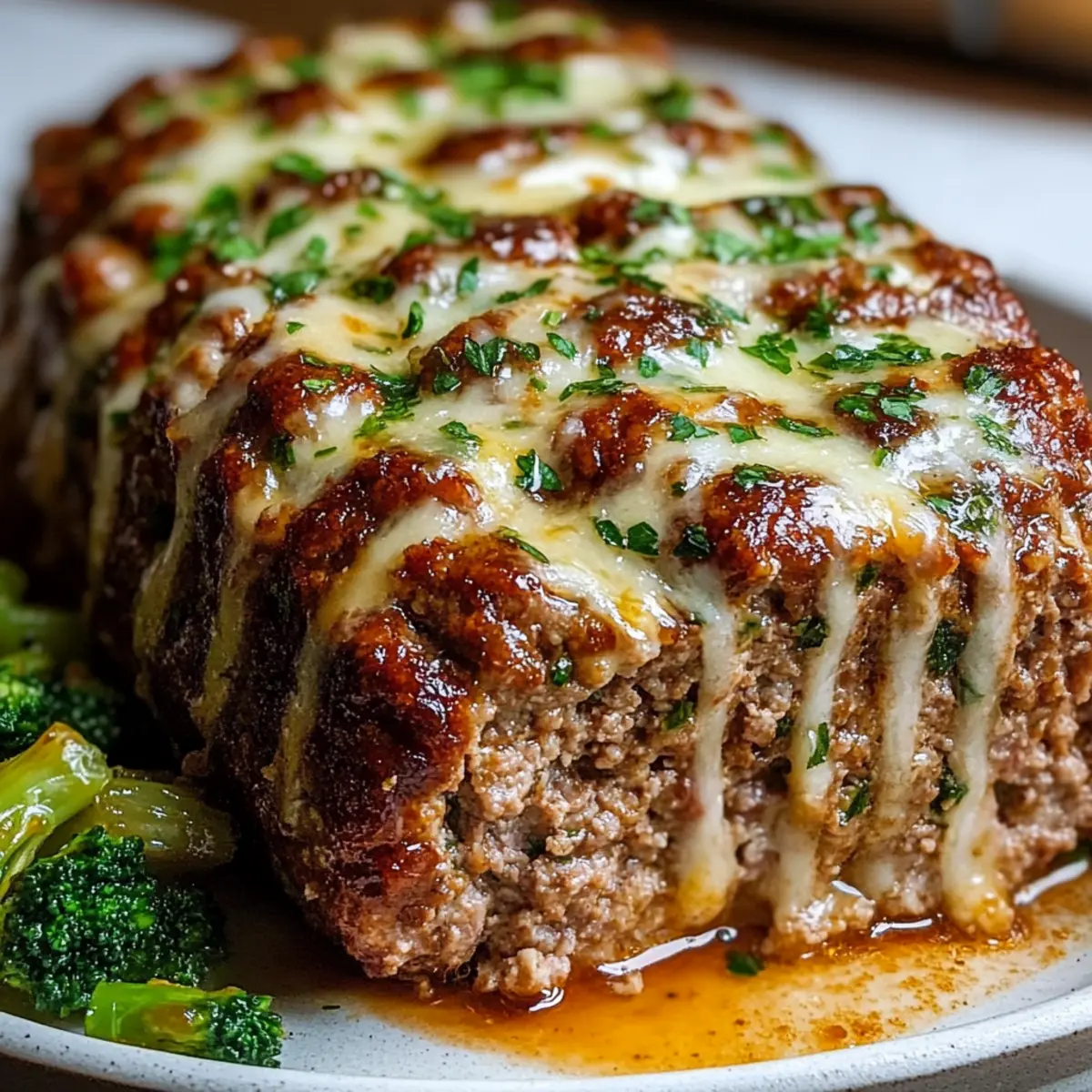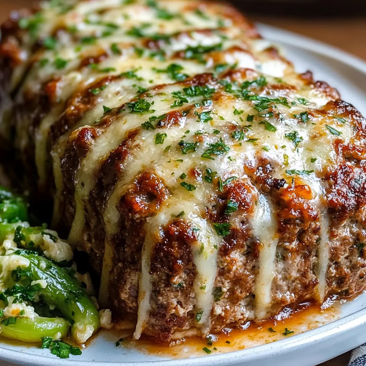 After resting, slice the meatloaf into thick, hearty pieces. Serve warm with your favorite sides, like mashed potatoes or a fresh salad. This comforting dish is sure to impress and please, transforming your meal into a delightful family feast. Enjoy the delicious layers of garlic and Parmesan that elevate this classic favorite!