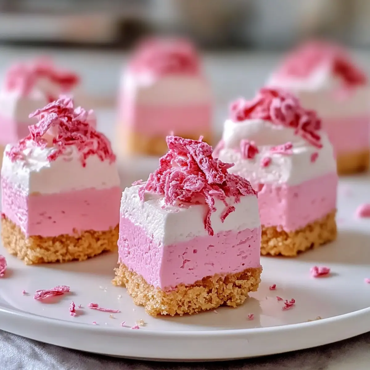 Even Slices: For a professional look, use a sharp knife to cut your No-Bake Pink Velvet Cheesecake Bites into even squares.