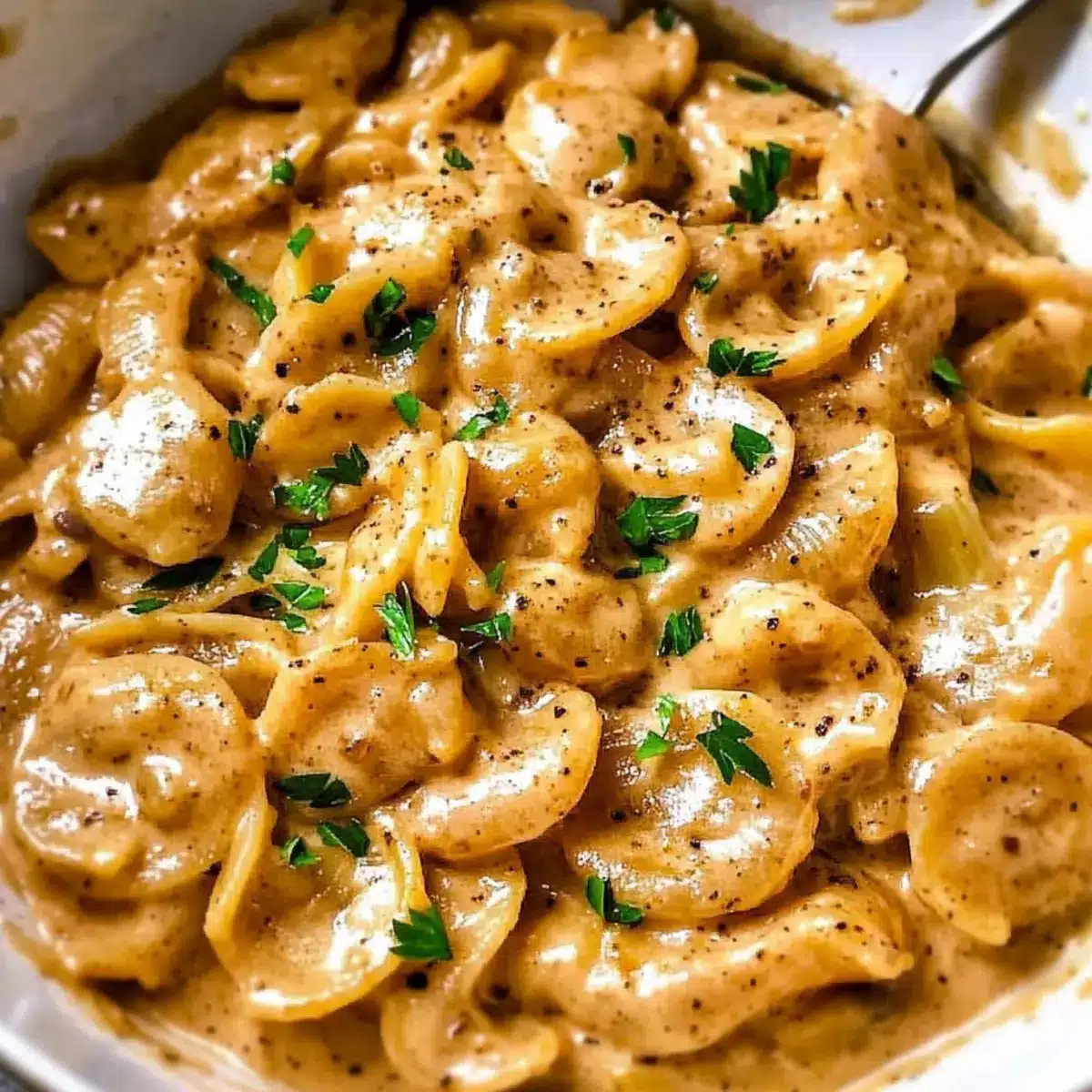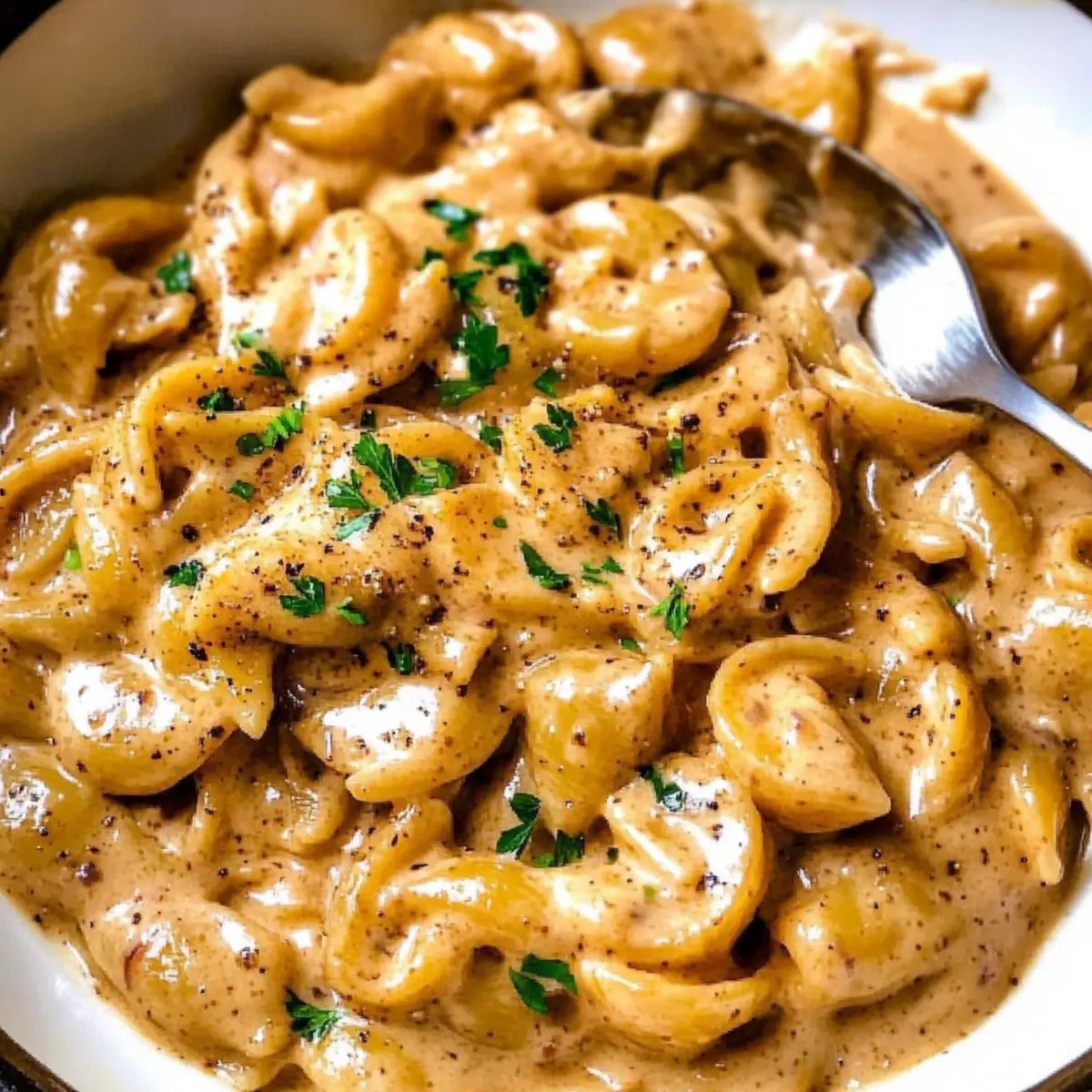 As I stirred the pot, a warm wave of nostalgia washed over me, transporting me back to cozy family dinners filled with laughter and the aroma of something special simmering. This One-Pot Creamy French Onion Pasta effortlessly brings the comforting essence of home cooking right to your kitchen. With the sweet satisfaction of caramelized onions and creamy goodness, this dish is not just easy to make; it’s also a pantry-friendly wonder that can turn any evening into a gourmet experience. What’s more, the magic lies in its simplicity—one pot means minimal cleanup, letting you savor every delicious moment without the fuss. Are you ready to elevate your weeknight meals with this delightful twist on a classic?