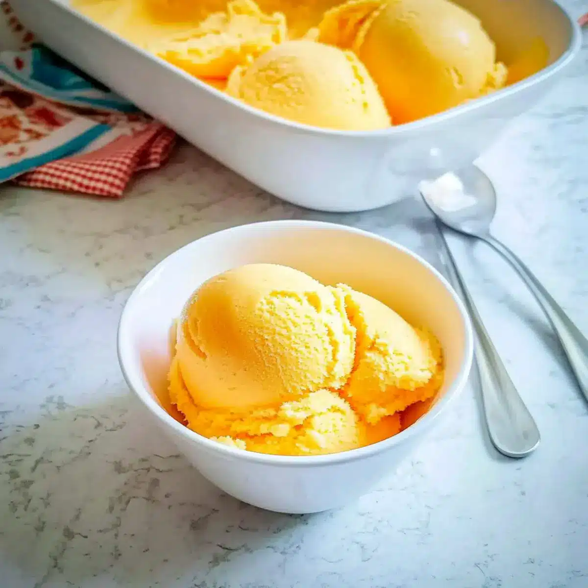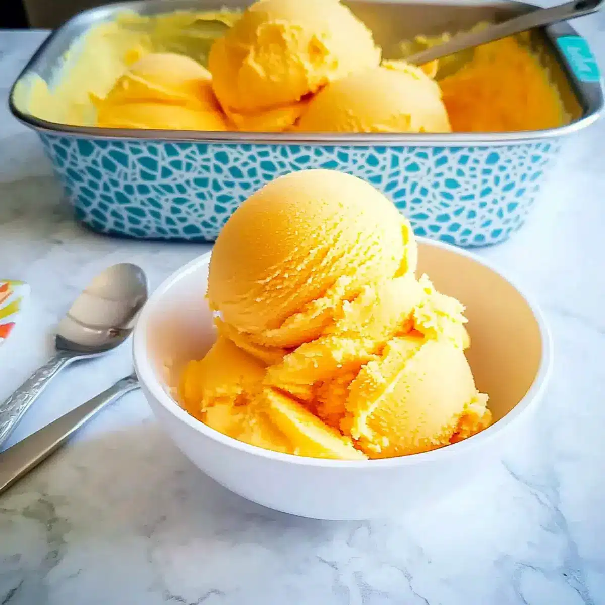 - After freezing, let it sit at room temperature for a few minutes before scooping. Serve in chilled bowls or cones, optionally garnished with fresh orange slices.