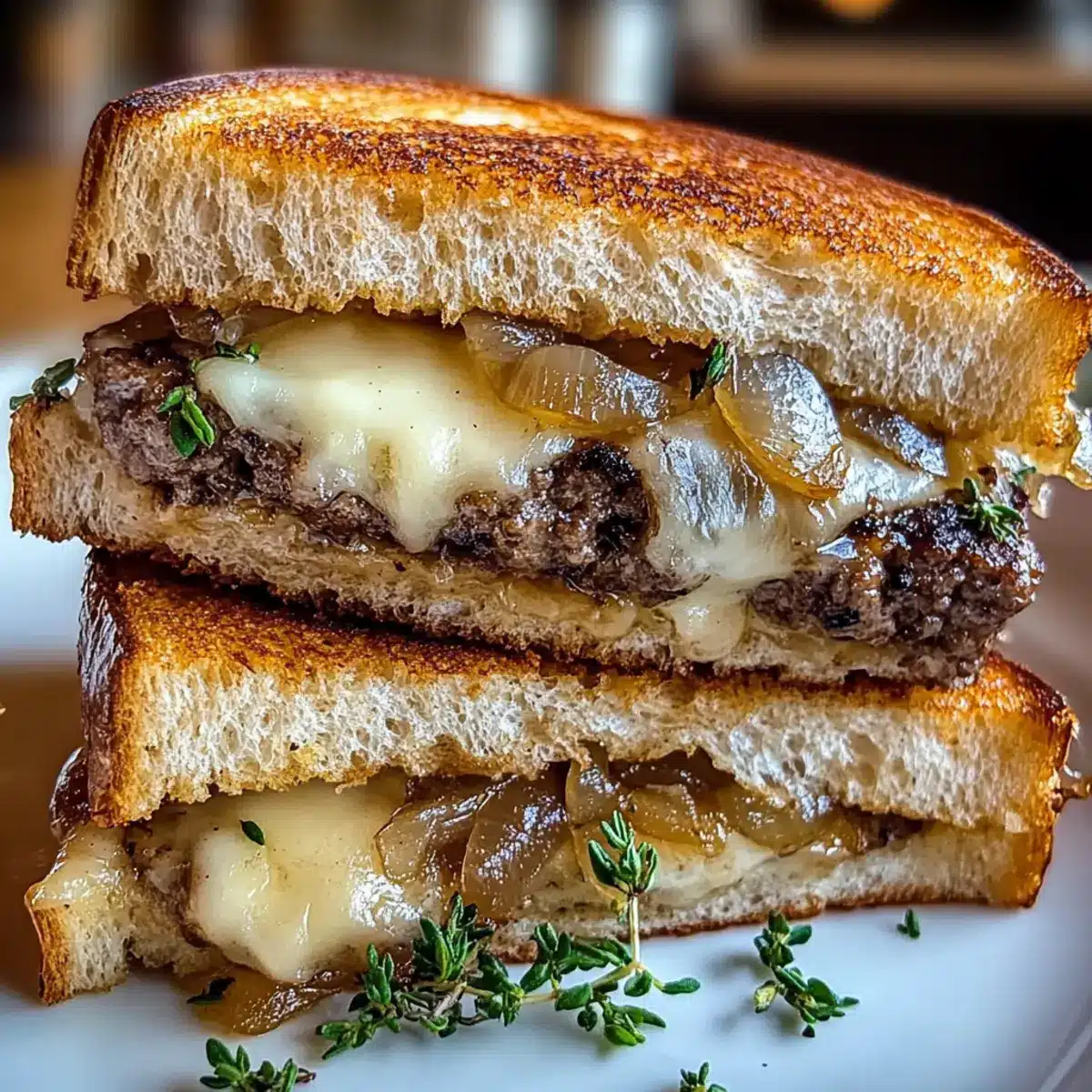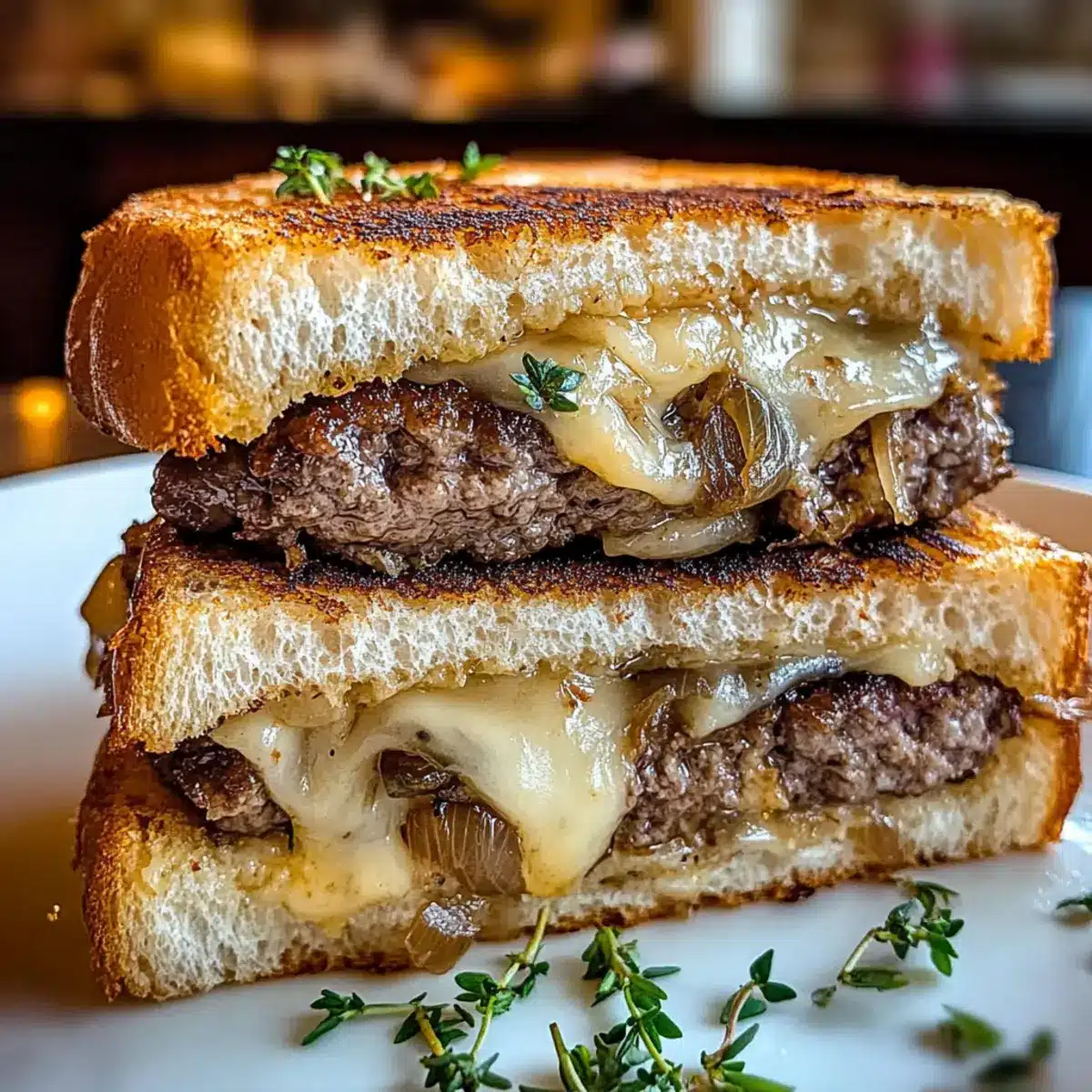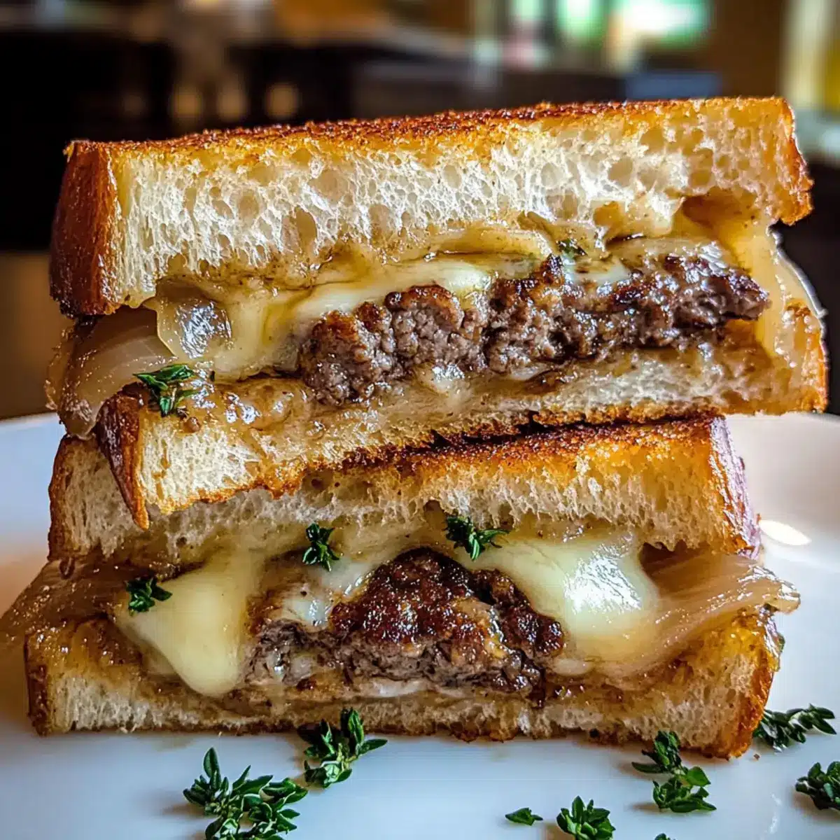 Savory Patty Melt on Garlic Herb Toasted Sourdough Delight