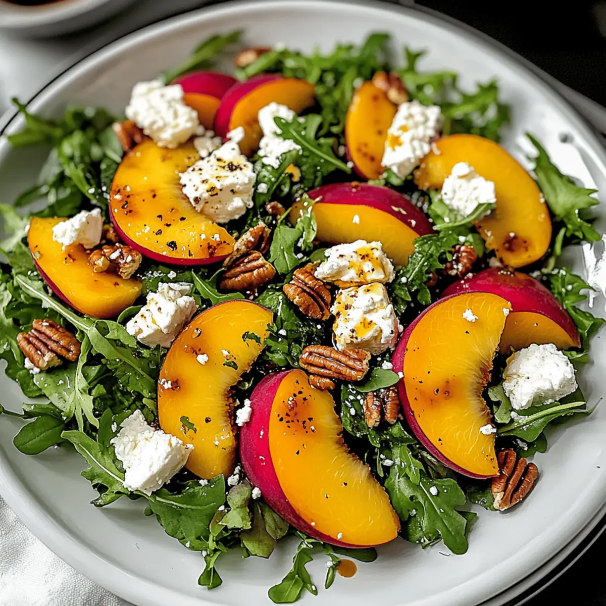 Freshness Reminder: For the best flavor and texture, consume the salad within 24 hours of preparation to enjoy the vibrant combination of peaches, feta, and greens.