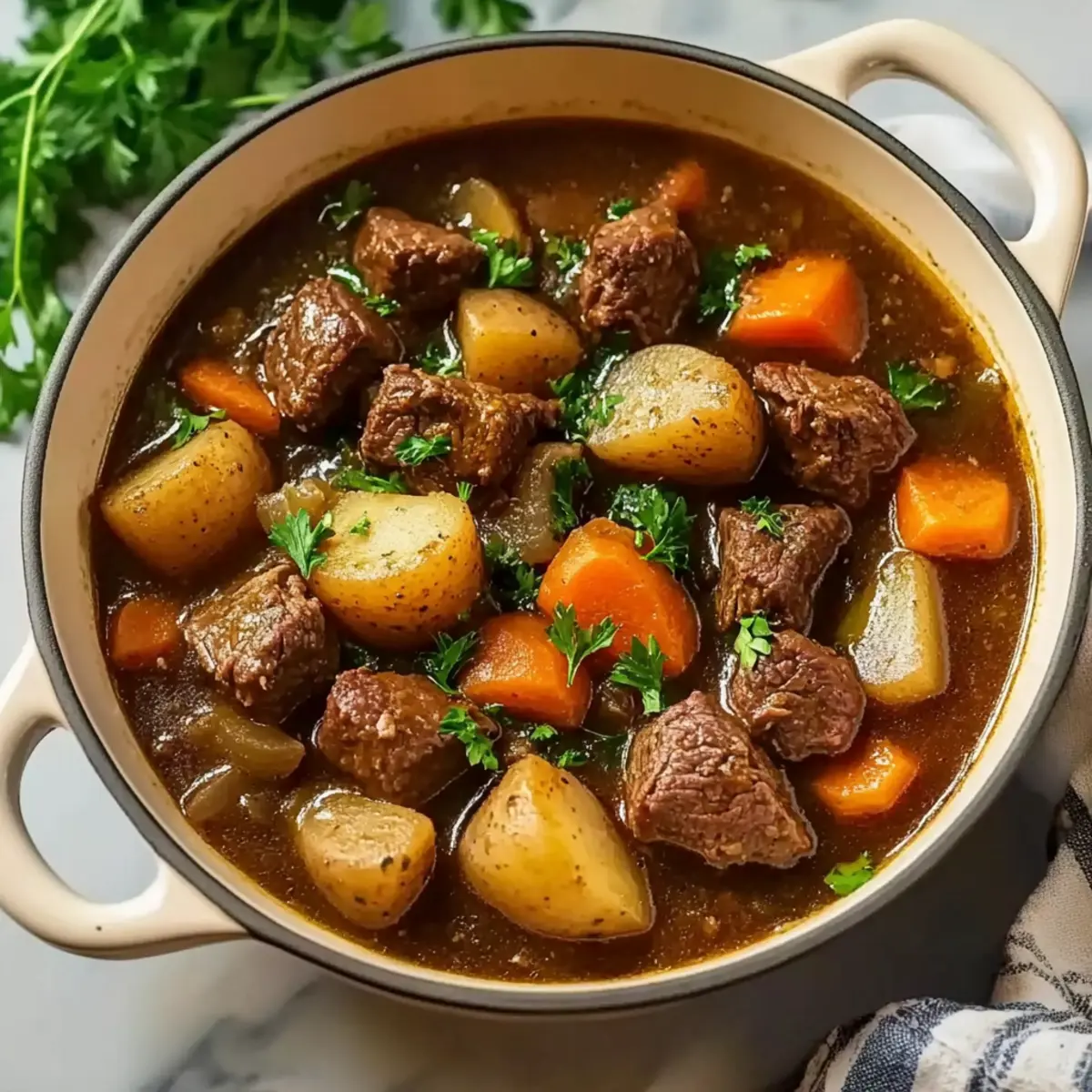 Reheating: To reheat, gently warm the stew on the stovetop with occasional stirring. If it’s too thick, add a splash of beef stock or water to reach your desired consistency.