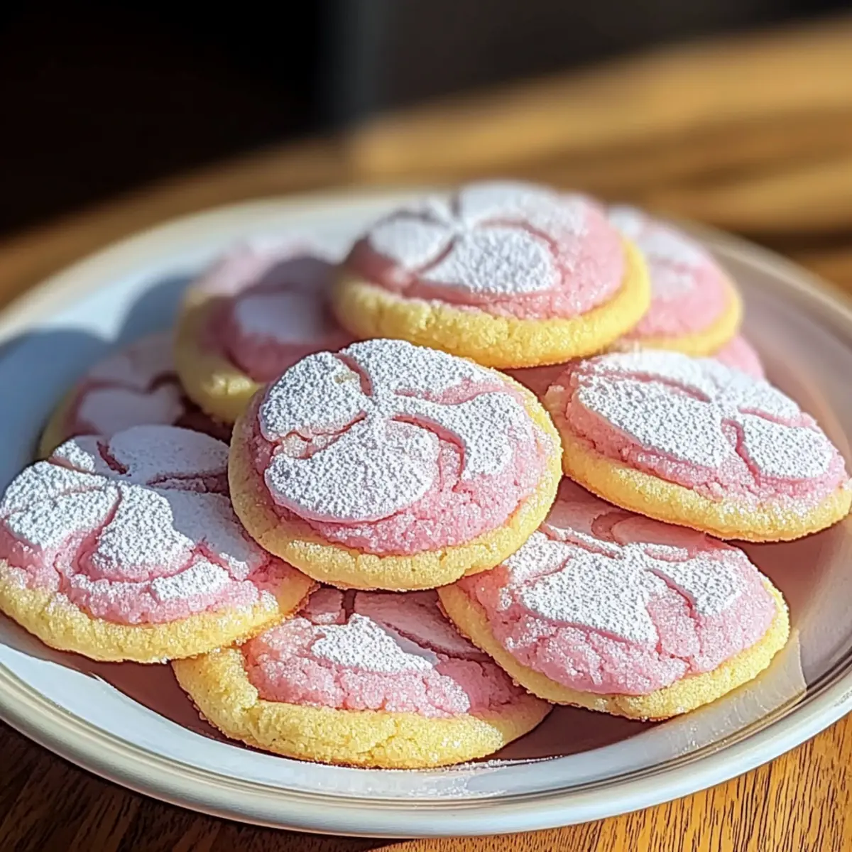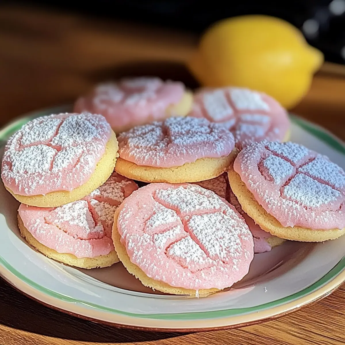 After baking, let the cookies cool on the sheets for about 5 minutes before transferring them to a wire rack to cool completely. For a final touch, dust the cooled cookies with powdered sugar for an extra layer of sweetness and a lovely presentation. Enjoy the beautiful sight of your freshly made Pink Lemonade Cookies!