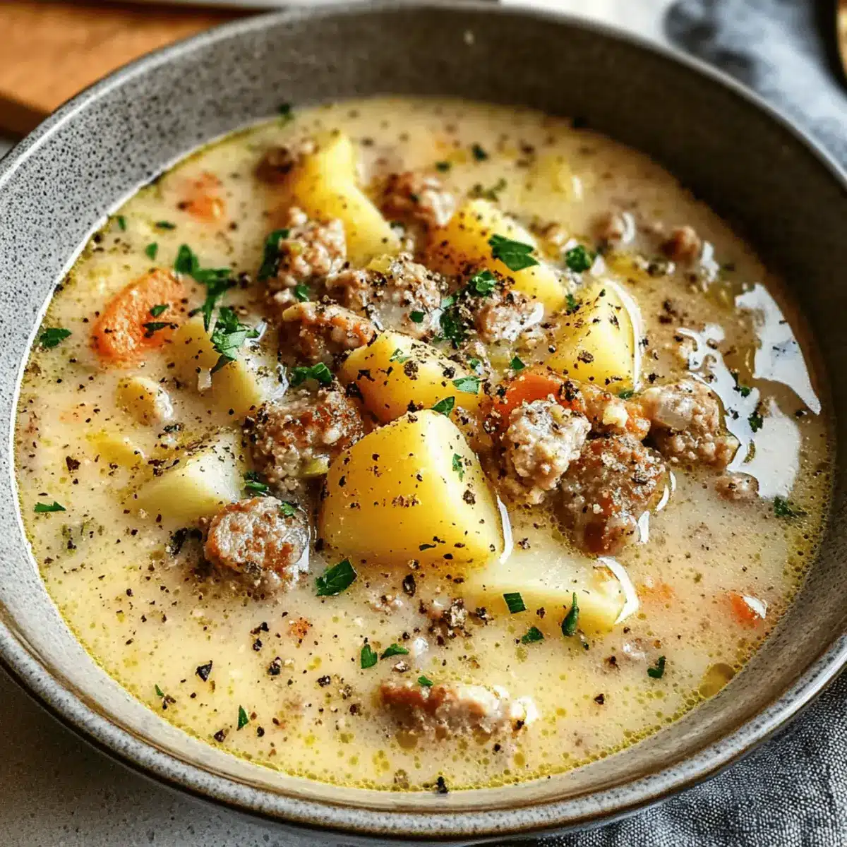 Preparing your Potato and Sausage Chowder ahead of time can save precious moments during your busy week! You can chop the potatoes, onions, and garlic up to 24 hours in advance. Simply store these in an airtight container in the refrigerator to maintain their freshness. The sausage can be browned ahead as well; just reheat it before adding the other ingredients. When you’re ready to serve, combine all the prepped ingredients with the chicken broth and heavy cream, and allow them to simmer as per the original instructions. By prepping ahead, you’ll enjoy a comforting meal with just a little finishing touch, ensuring that your chowder tastes just as delicious as if it were made fresh!