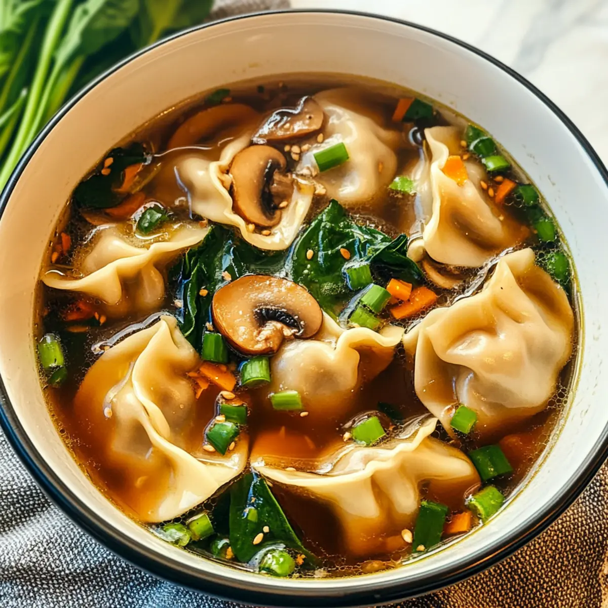 Potsticker Soup is perfect for meal prep and can be a lifesaver for your busy weeknights! You can prepare the broth, including minced garlic and grated ginger, up to 24 hours in advance; just refrigerate it in an airtight container. Additionally, chop any vegetables you plan to include, like mushrooms and spinach, to save time. When you’re ready to enjoy your soup, simply reheat the broth on the stove, toss in the frozen potstickers, and cook everything together for about 5-7 minutes until heated through. This ensures your Potsticker Soup remains just as delicious and comforting, giving you a satisfying homemade meal with minimal effort!