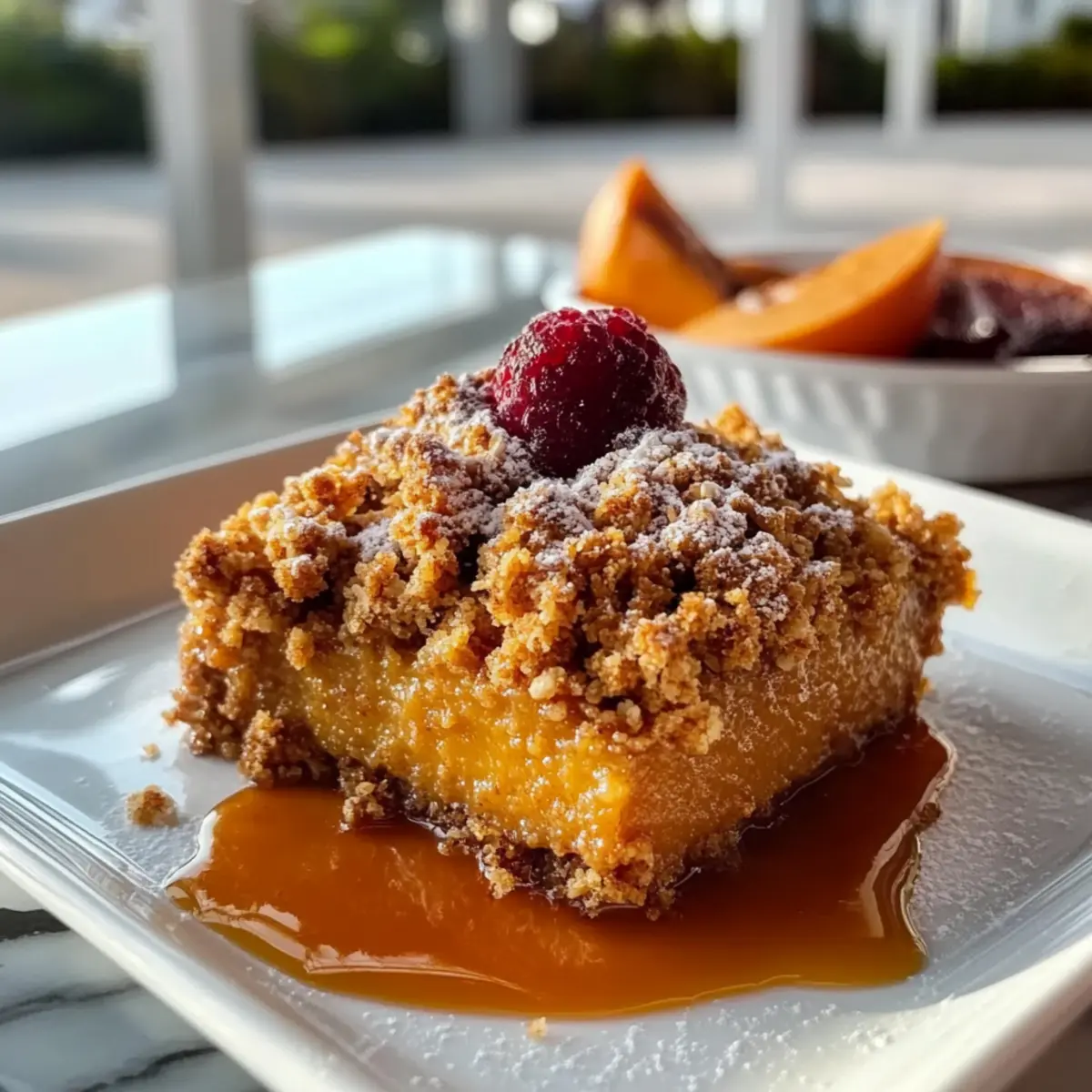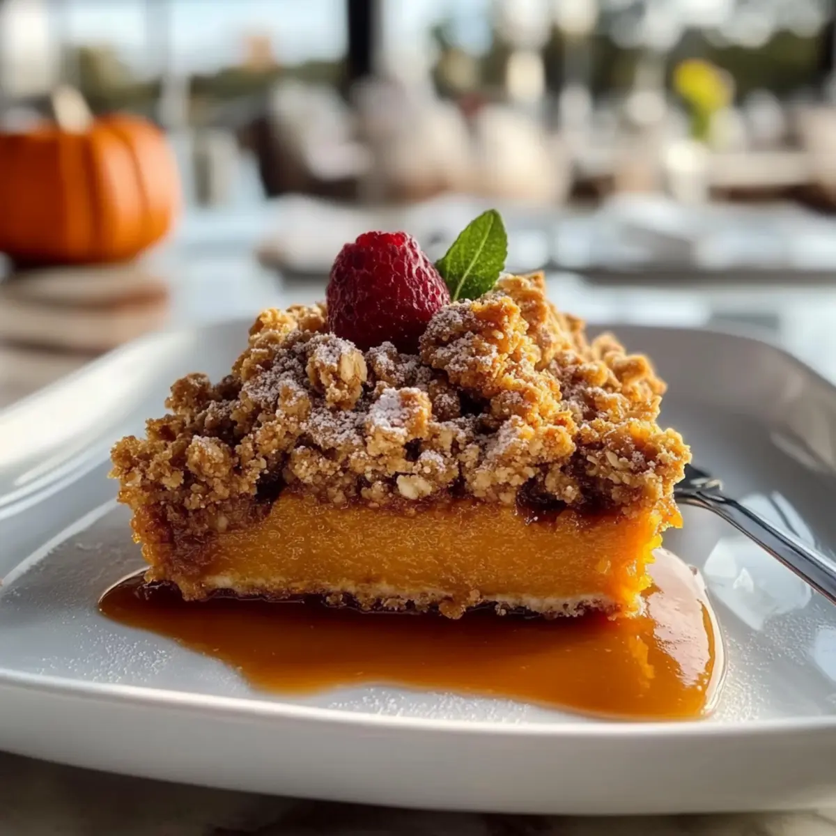 Caramel Sauce: Drizzling warm caramel over the Pumpkin Crisp introduces a rich, buttery sweetness that beautifully harmonizes with the pumpkin spice flavors.