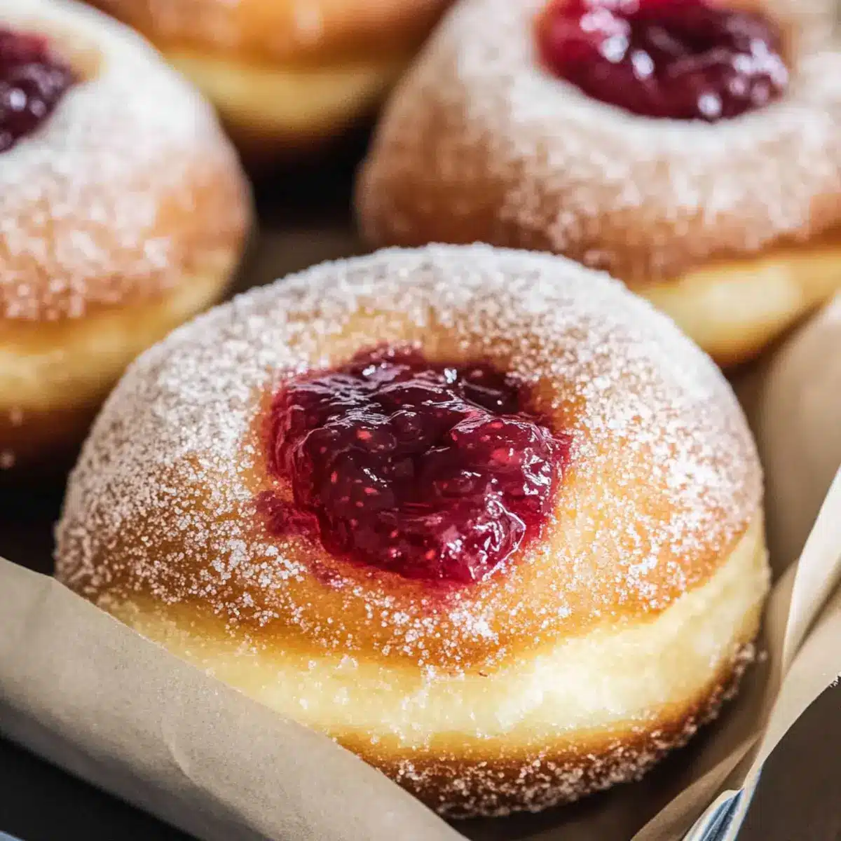 Freezer: For longer storage, freeze unfilled doughnuts without jam in a single layer on a baking sheet, then transfer to a freezer bag for up to 1 month. Fill with raspberry jam on the day of serving.