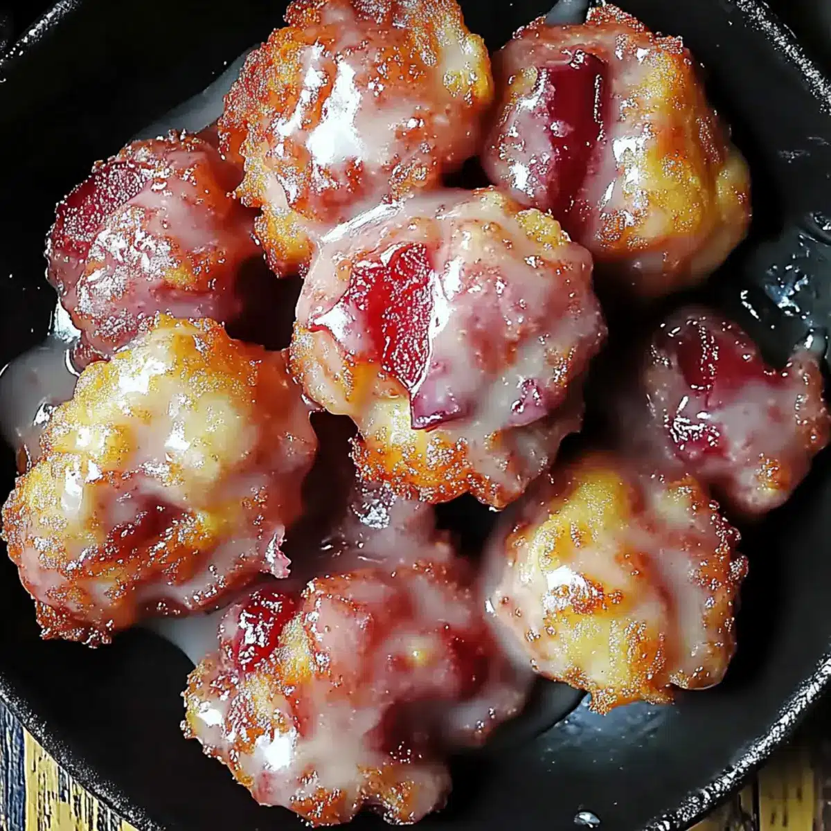 - Drizzle the sweet glaze over the warm fritters before serving.