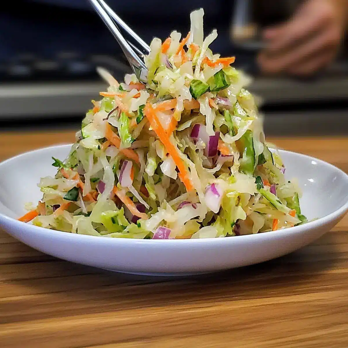 The more the merrier! This tangy salad is fantastic served cold as a side dish alongside grilled meats or sandwiches. You can also enjoy it on its own for a light snack. If you want to elevate it further, try adding a sprinkle of fresh herbs like dill or chives right before serving to enhance both flavor and presentation!
