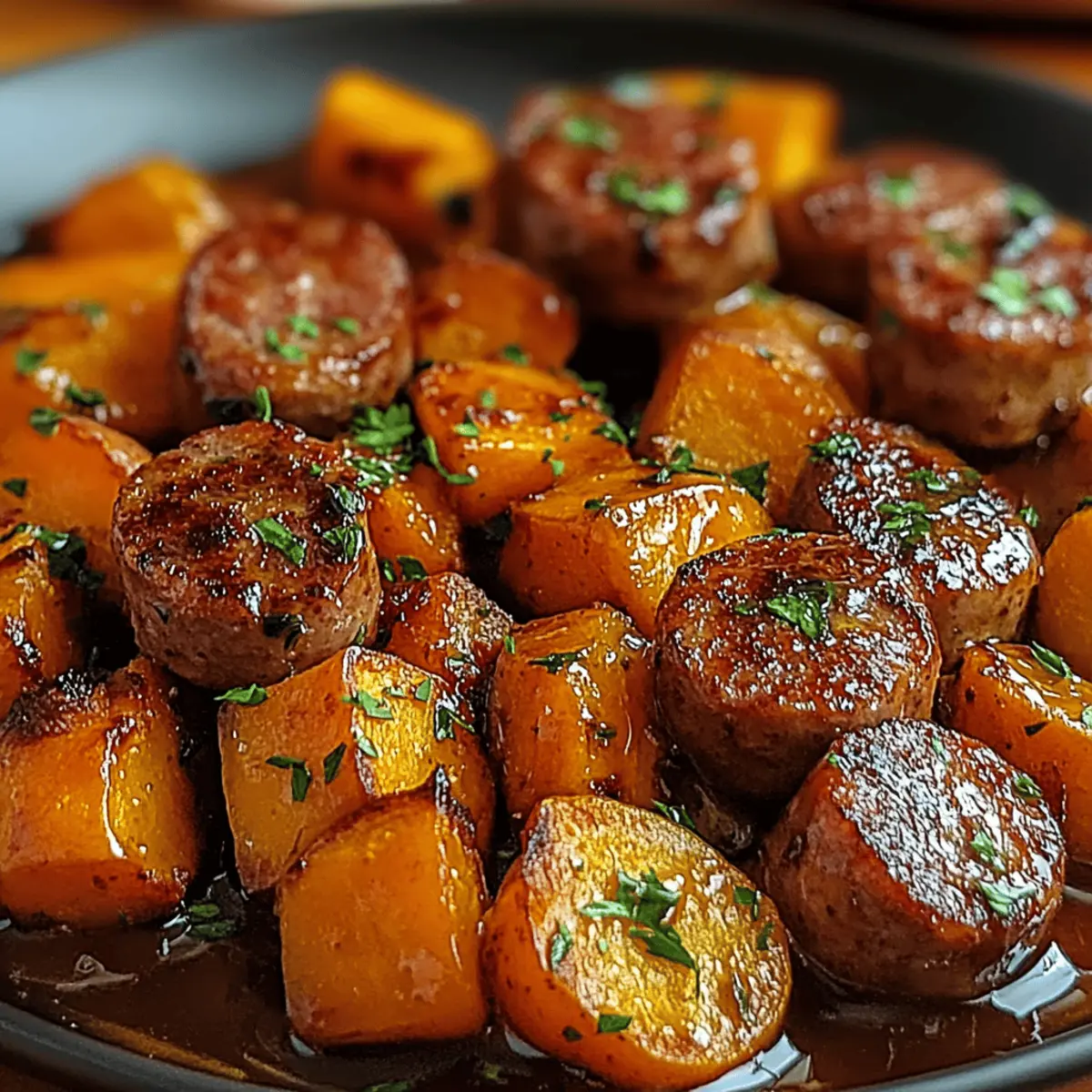 Sausage and Sweet Potatoes with Honey Garlic Sauce Bliss