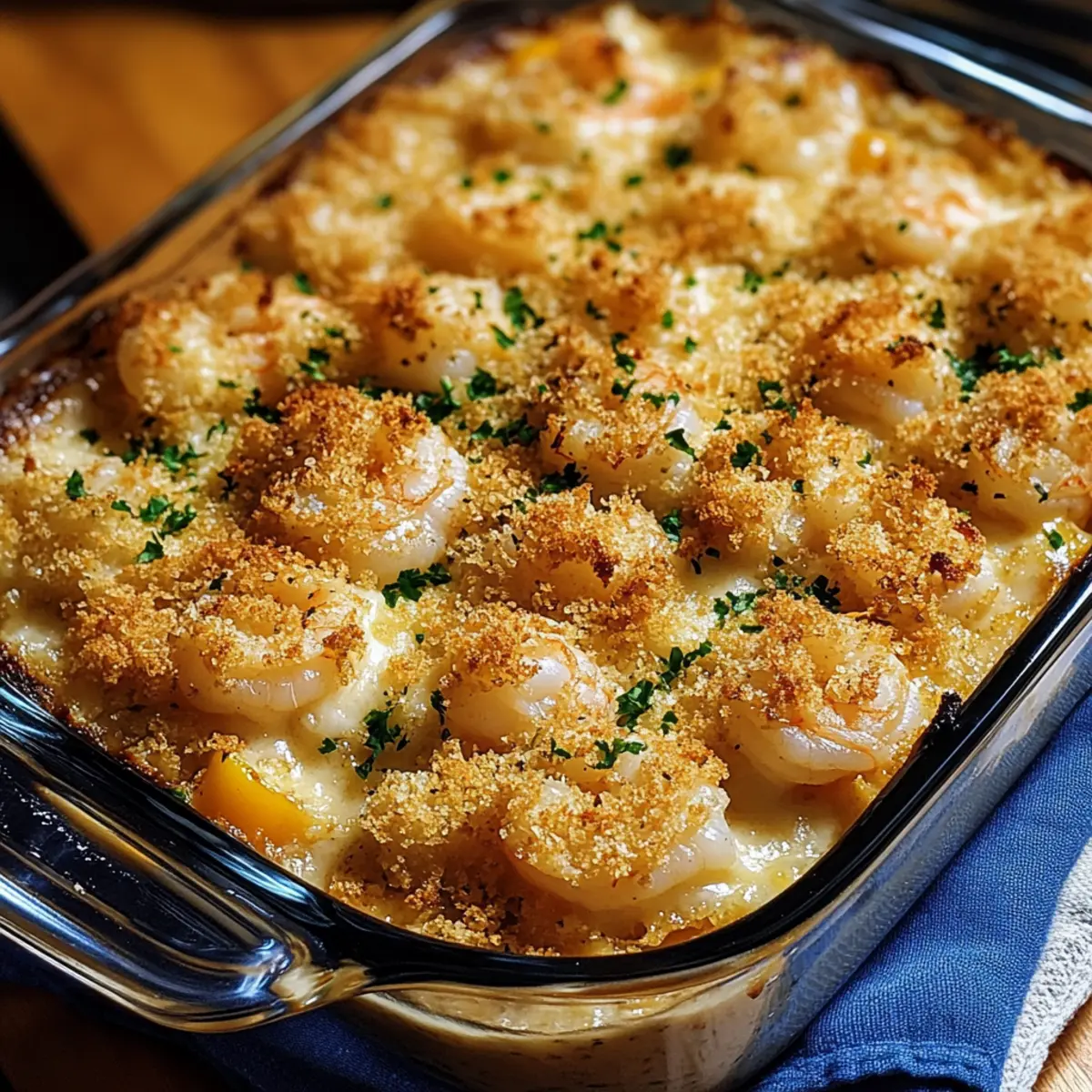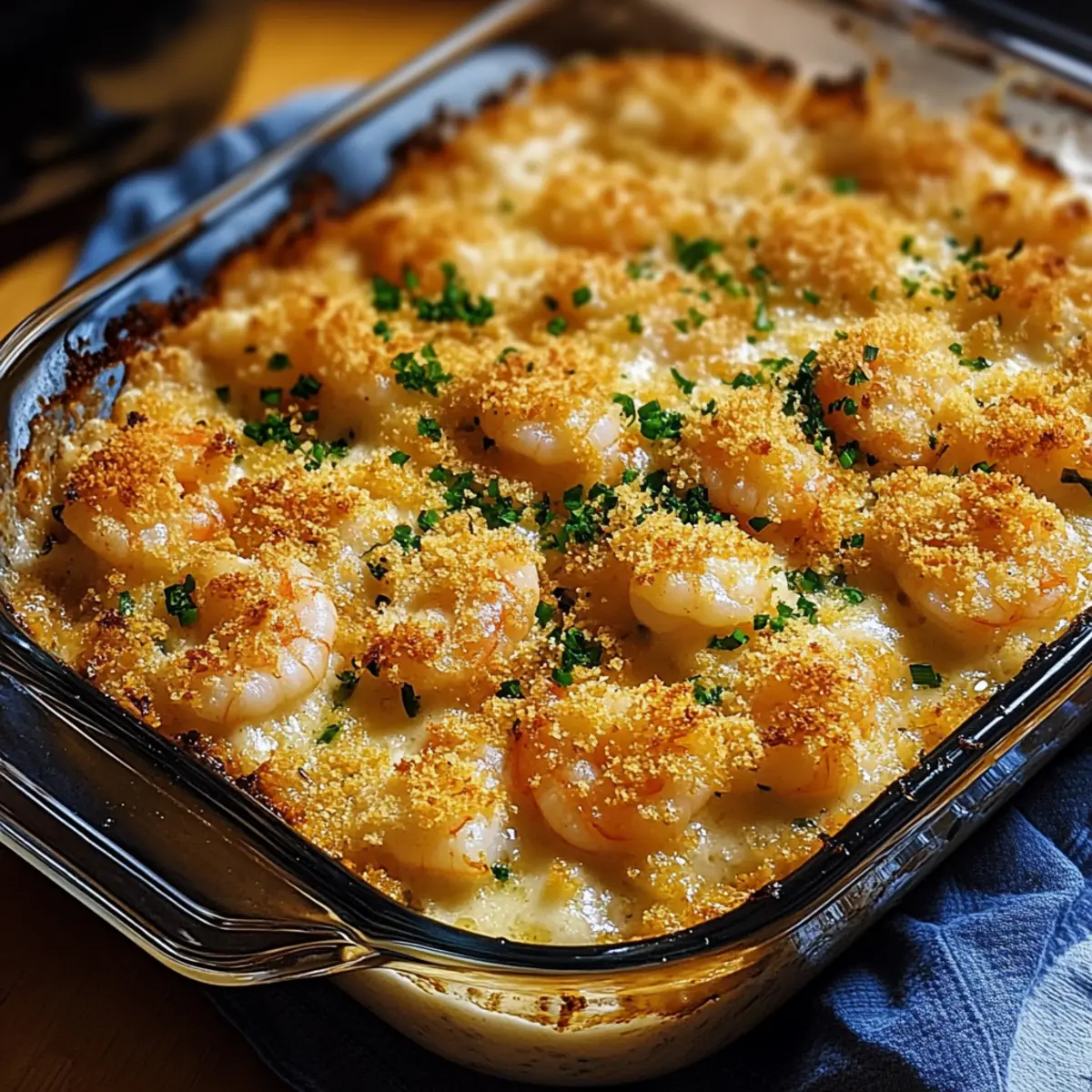 Protein Swap: Substitute shrimp with cooked chicken or crab for a delicious variation that caters to different seafood preferences. Either option brings a unique taste while maintaining the rich, creamy base of the casserole.