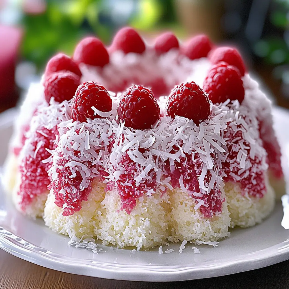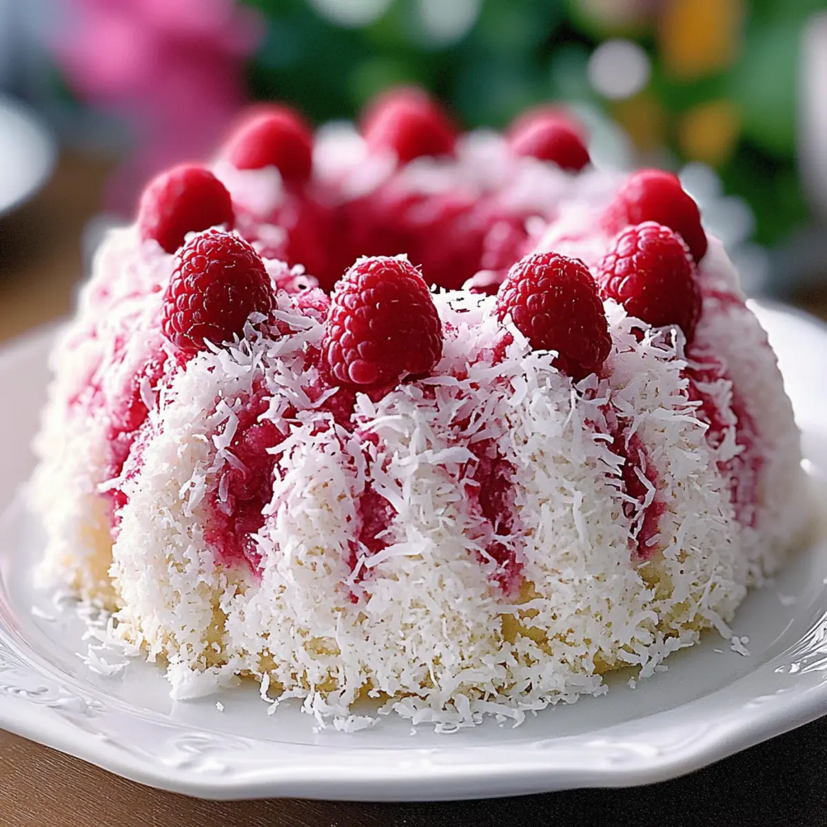 Vibrant Colors: The striking raspberry swirls mingling with fluffy white coconut create an eye-catching centerpiece for any table.