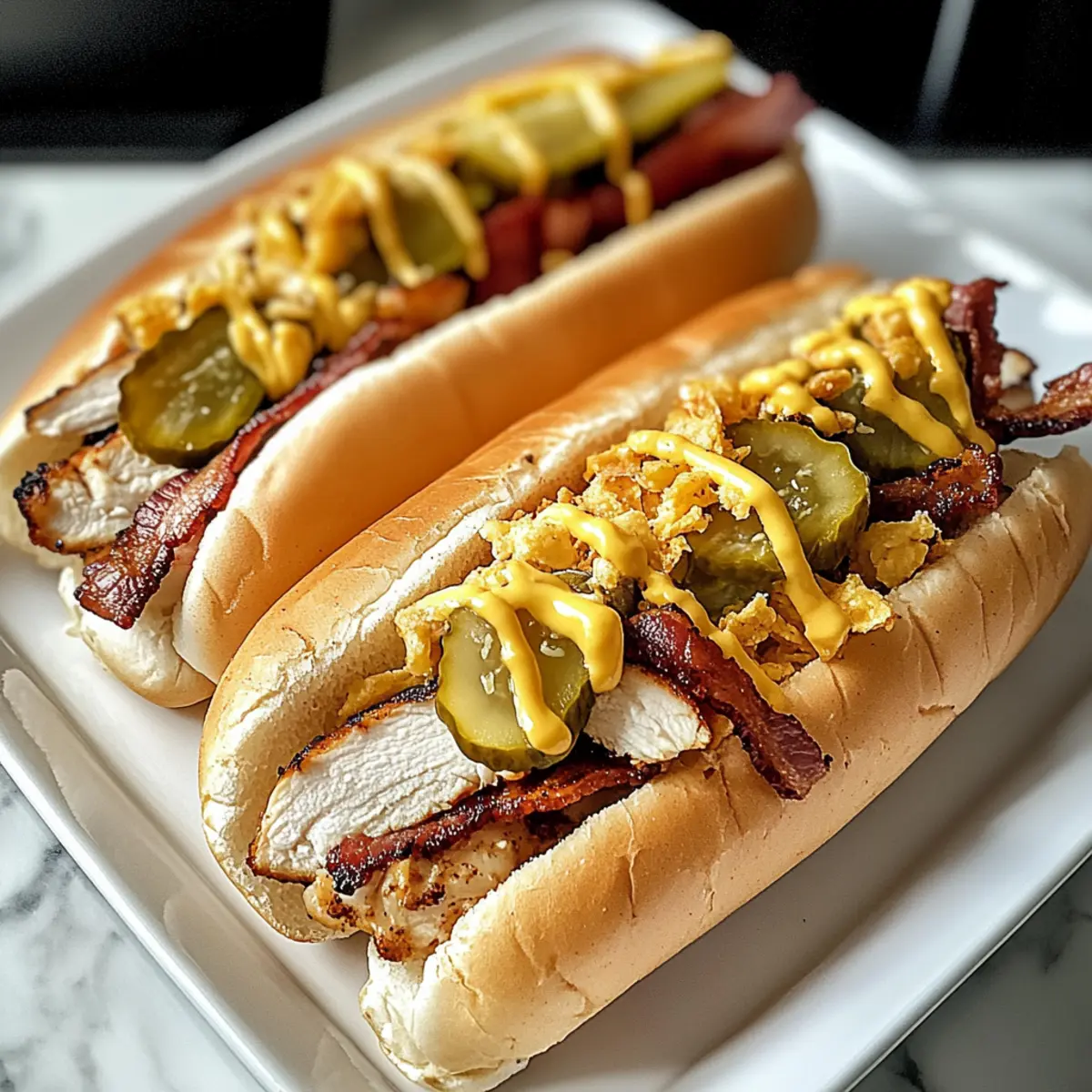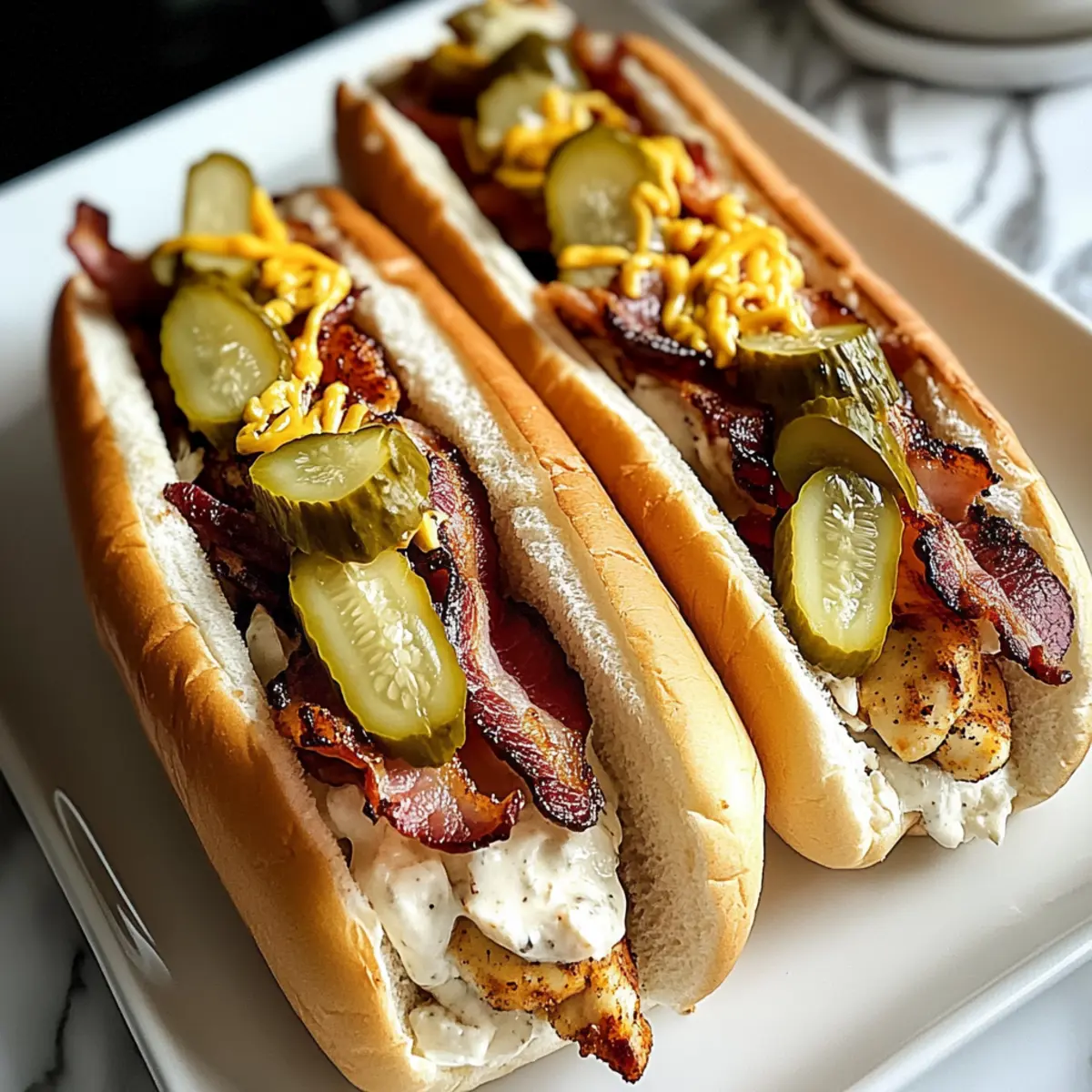 The aroma of sizzling bacon fills the kitchen as I assemble a plate of South Carolina Bird Dog Sandwiches, where Southern comfort food meets effortless charm. Picture this: tender grilled chicken topped with crispy bacon and cheddar, all nestled in warm, toasted hoagie rolls, drizzled with a zesty ranch dressing and crowned with crunchy dill pickles. What makes this dish truly irresistible is its accessibility—within just 30 minutes, you can whip up a crowd-pleasing meal that’s perfect for family gatherings or a cozy weeknight dinner. Plus, this beginner-friendly recipe opens the door for endless customization; swap cheese or sauces to suit your taste. Ready to dive into this flavor-packed delight that feels like a warm hug on a plate? Let’s get cooking!