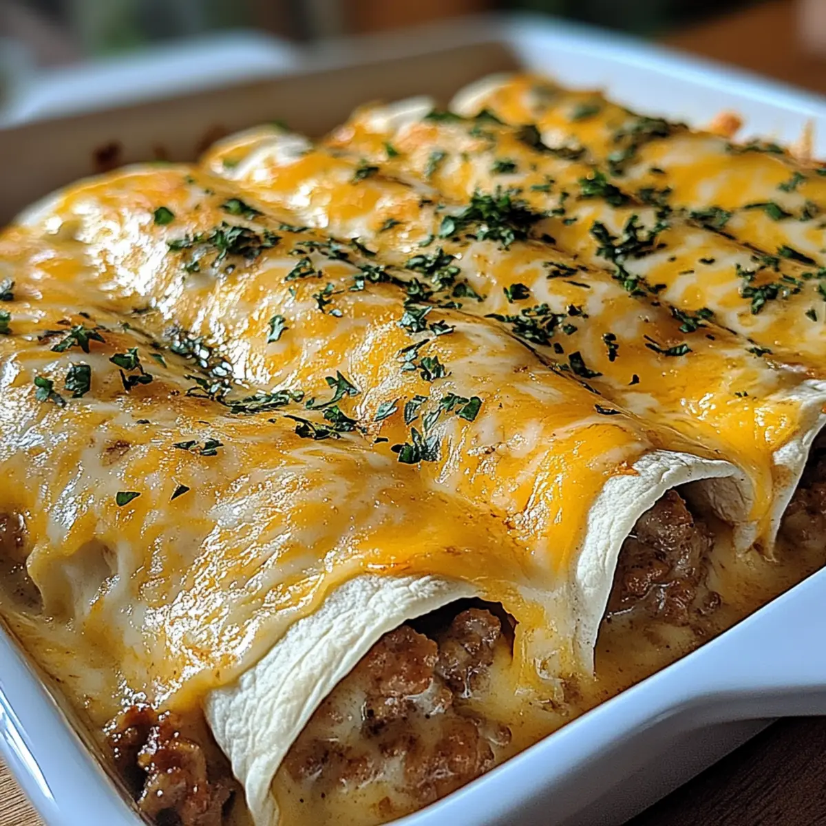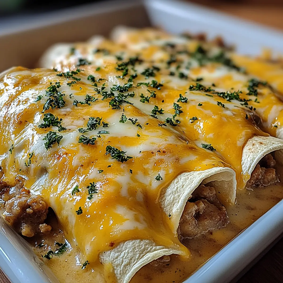 Preheat your oven to 375°F (190°C). Pour the rich sausage gravy evenly over the assembled Southern Breakfast Enchiladas, ensuring each one is well-coated. Cover the baking dish with foil and bake for 25 minutes. For the last 10 minutes, remove the foil to allow the top to crisp and slightly brown, enhancing the texture and flavor.