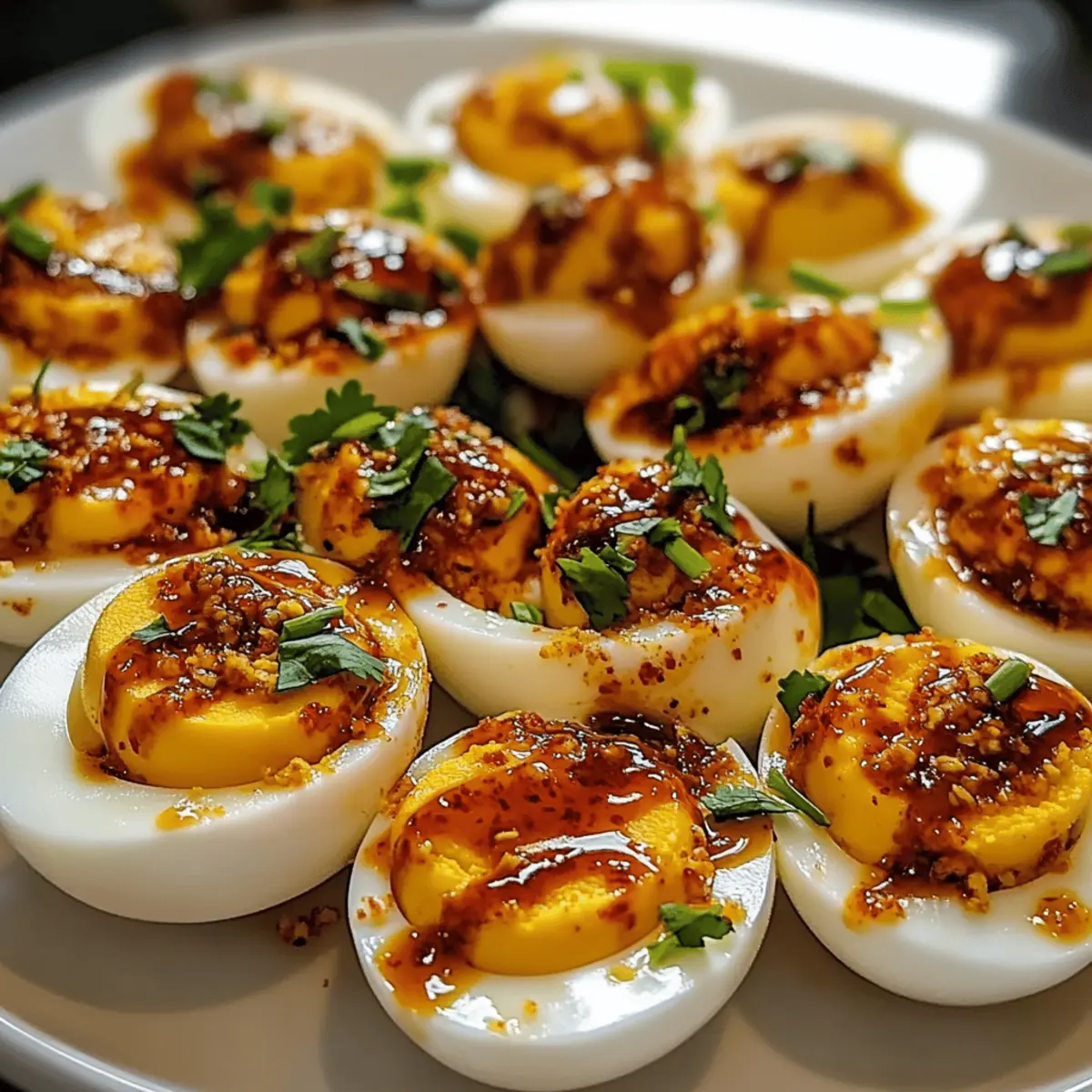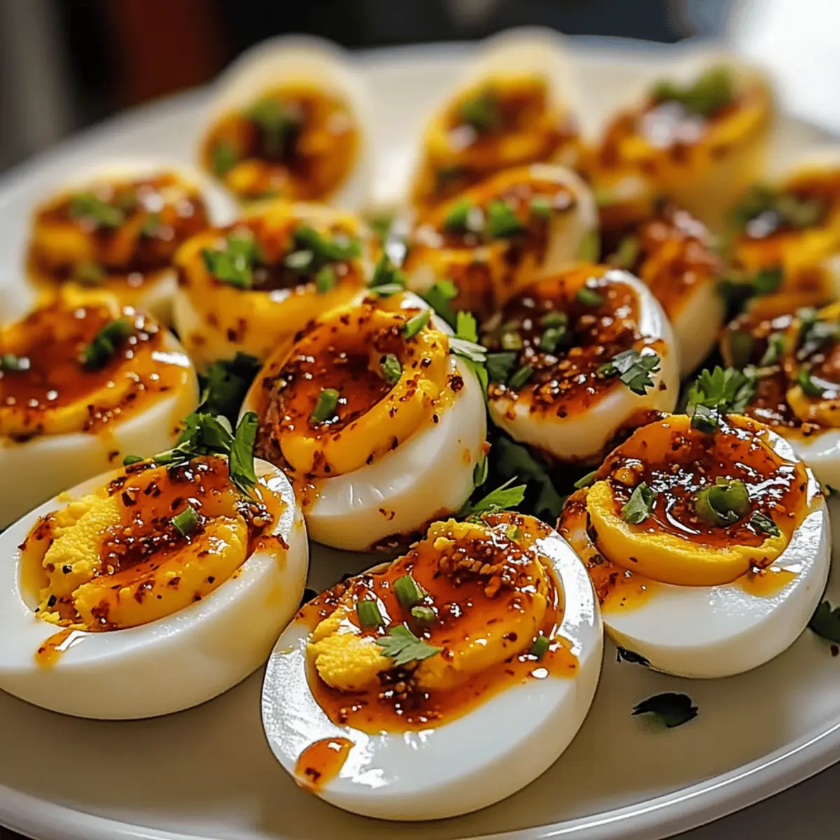 Flavor Explosion: Each bite combines rich creaminess with a tantalizing spice, making these Spicy Chili Garlic Deviled Eggs a must-try for heat lovers.