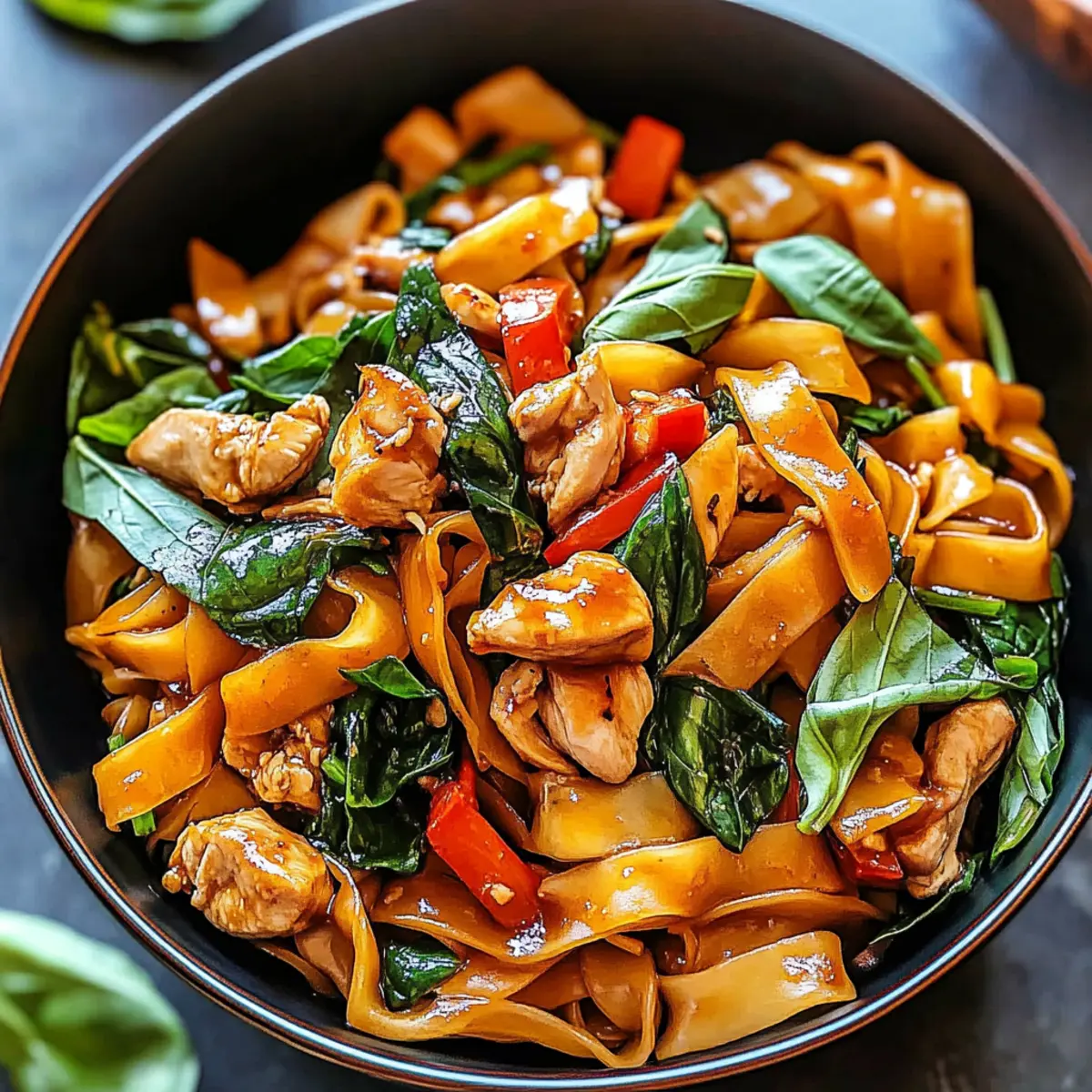 These Spicy Drunken Noodles with Chicken are perfect for meal prep enthusiasts who want a quick dinner option any night of the week! You can slice the chicken and chop the vegetables up to 24 hours in advance, storing them in airtight containers in the refrigerator to maintain freshness and prevent browning. Additionally, soak the wide rice noodles and keep them in water until you’re ready to cook. When it’s time to enjoy this meal, simply stir-fry the chicken and vegetables, add the noodles, and finish with the bold sauces and fresh basil. You’ll have a delicious homemade dish that’s just as flavorful, with minimal effort required!