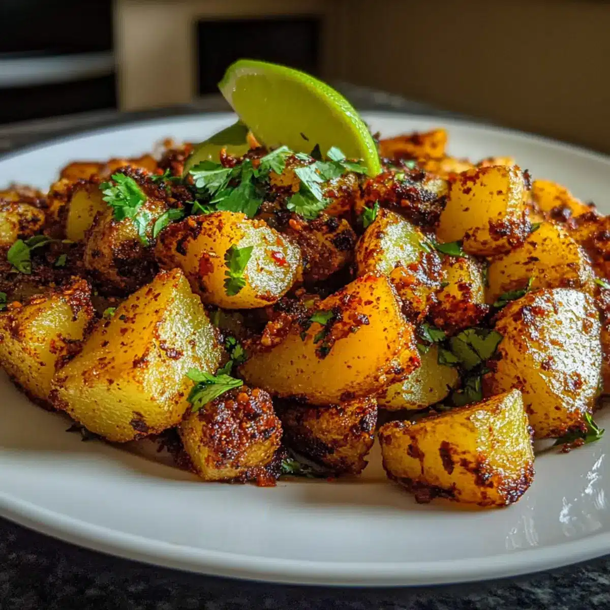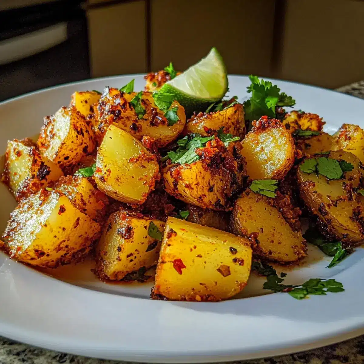 - Plate the spiced potatoes, garnish with chopped cilantro, and serve immediately.