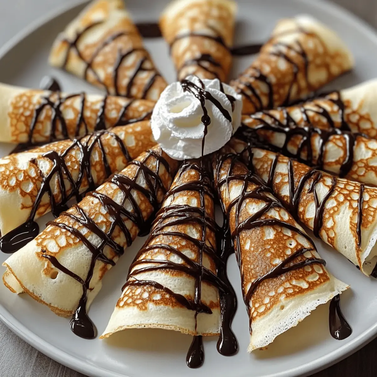 Decadent Flavor: Drizzled with rich chocolate, these crepes are a sweet delight that will satisfy any sweet tooth.