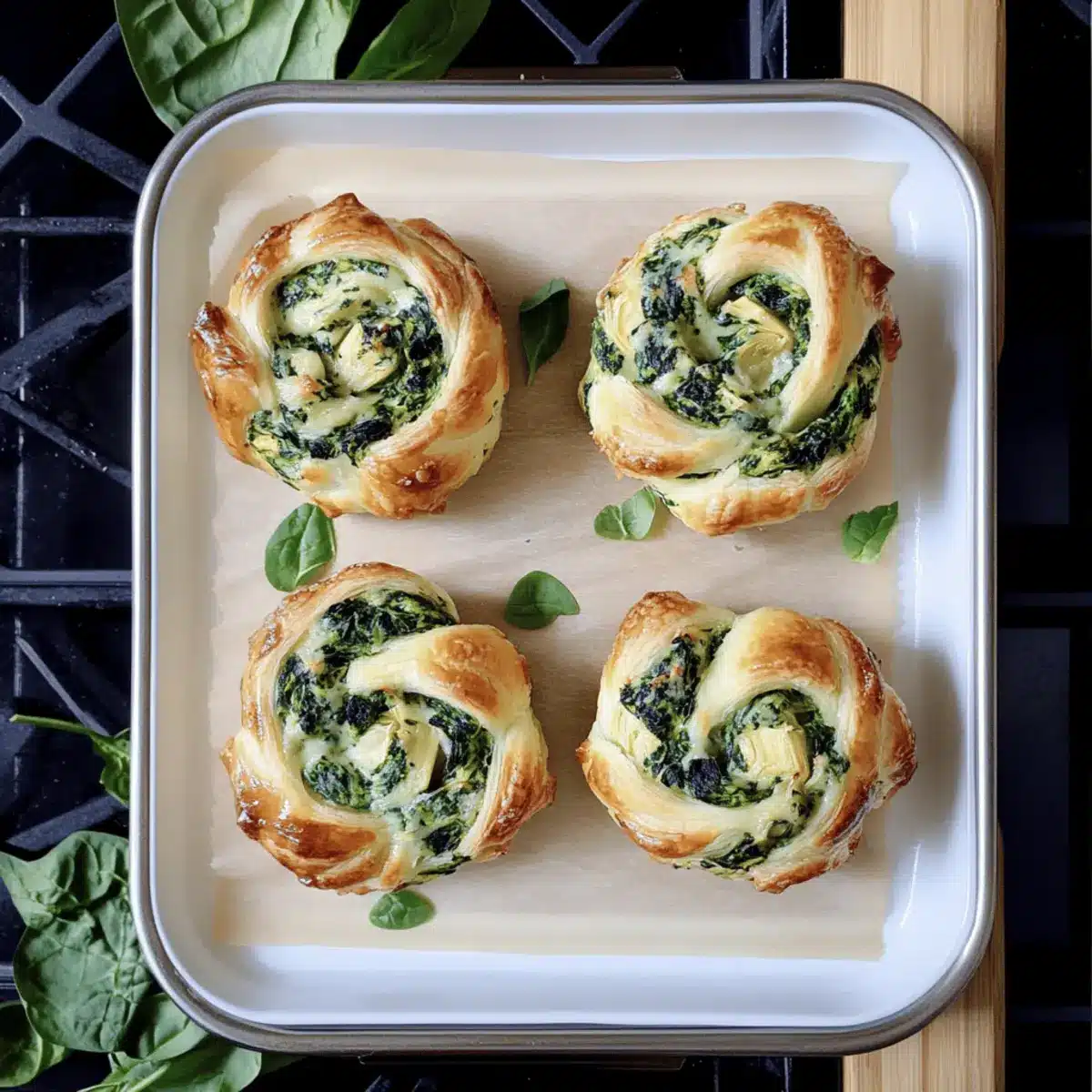 These Spinach Artichoke Swirls are a fantastic choice for meal prep enthusiasts! You can prepare the filling (combining spinach, artichokes, cheeses, and seasonings) up to 24 hours in advance. Just refrigerate it in an airtight container to maintain freshness and flavor. When you’re ready to bake, unfold your puff pastry, assemble the swirls, and brush them with egg wash. Bake them straight from the fridge; they’ll turn out just as delicious as if made fresh. By prepping ahead, you save time on busy mornings or before entertaining guests, allowing you to enjoy these delectable swirls with minimal effort!