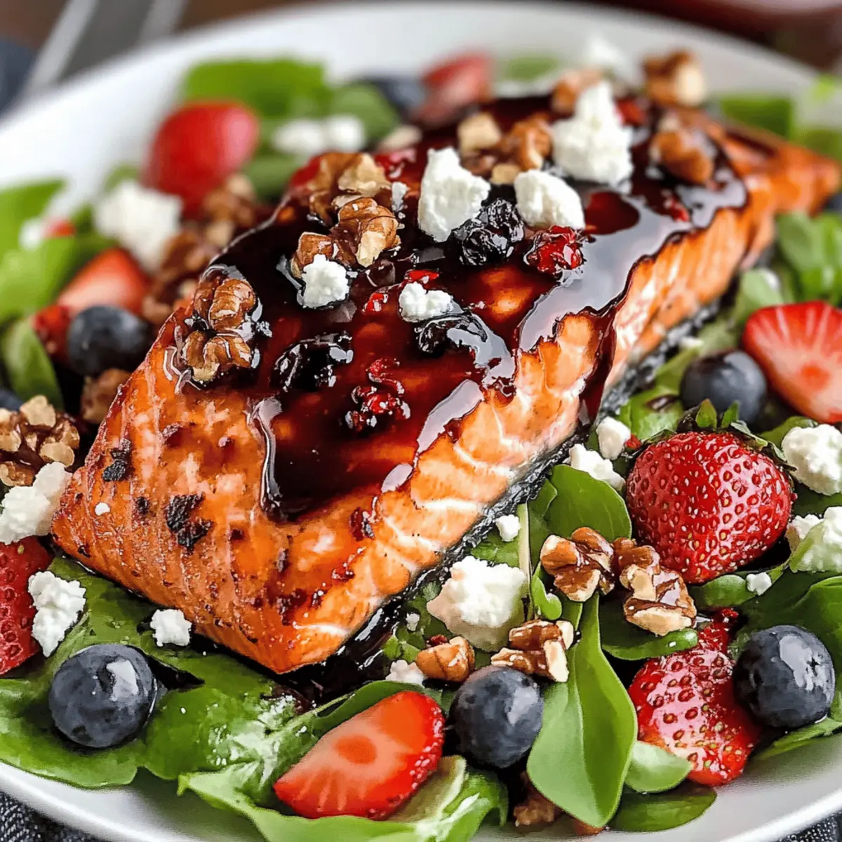 Chicken Alternative: Use grilled chicken breast in place of salmon for a hearty twist; it pairs wonderfully with the sweet strawberries.