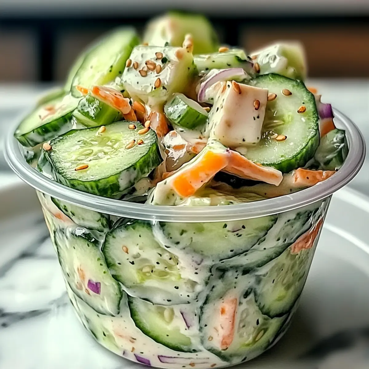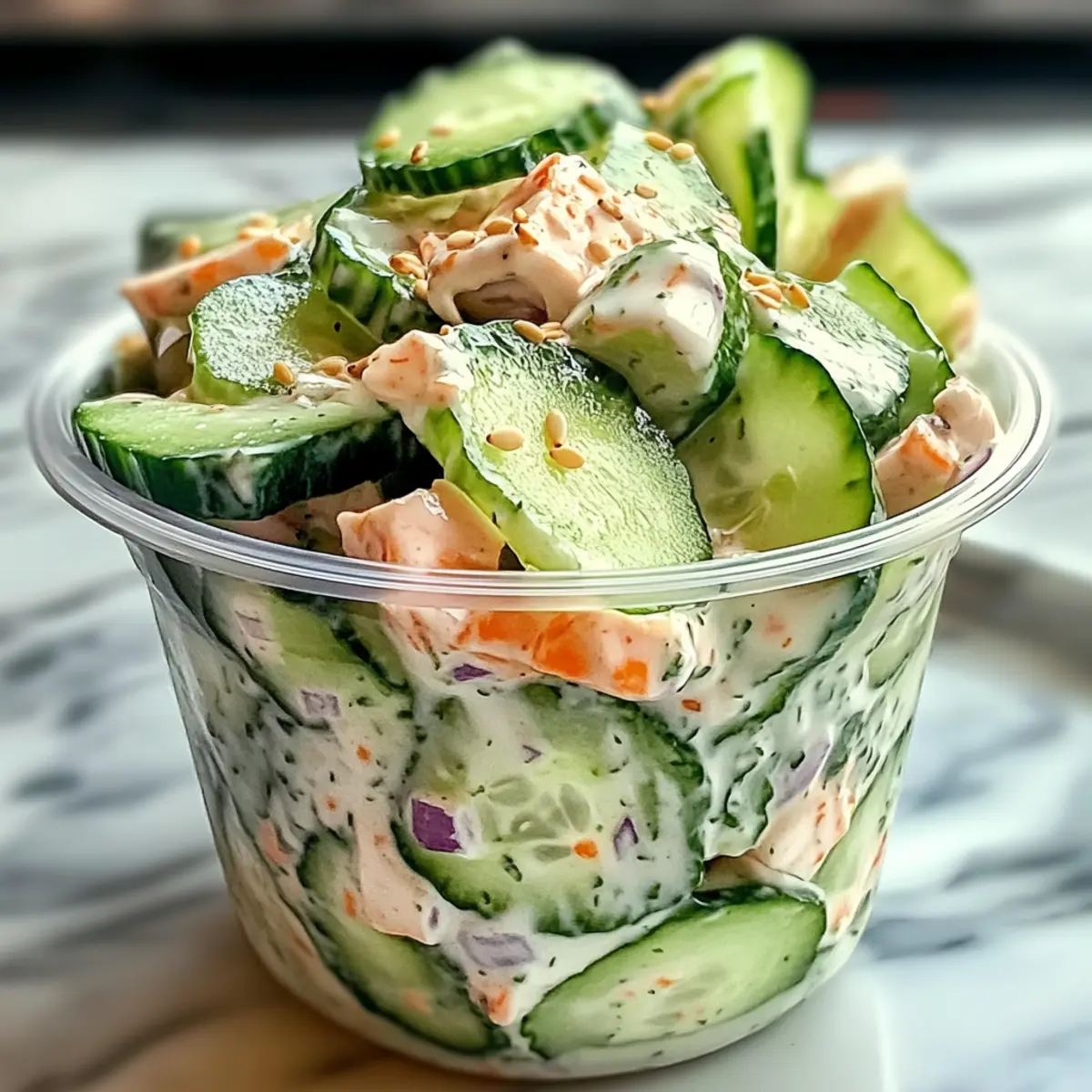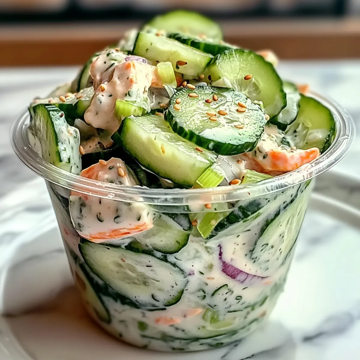 These Sushi Cucumber Salad components can be prepped ahead of time, making your meal planning a breeze! You can slice the cucumbers and onions up to 24 hours in advance, storing them in an airtight container to maintain their crunch and prevent browning. Similarly, the creamy dressing can be whisked together and stored in the refrigerator for up to 3 days. This way, when it’s time to serve, all you’ll need to do is combine the prepped vegetables with the dressing and any desired mix-ins like avocado or shrimp. This not only saves you precious time but ensures your salad remains fresh and delicious, ready to impress at mealtime!